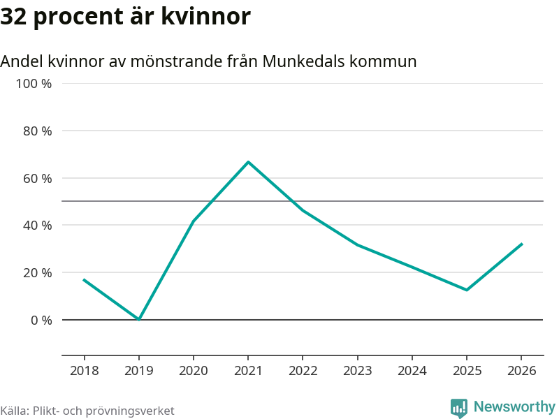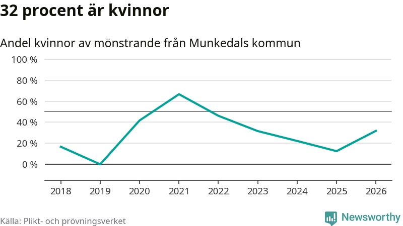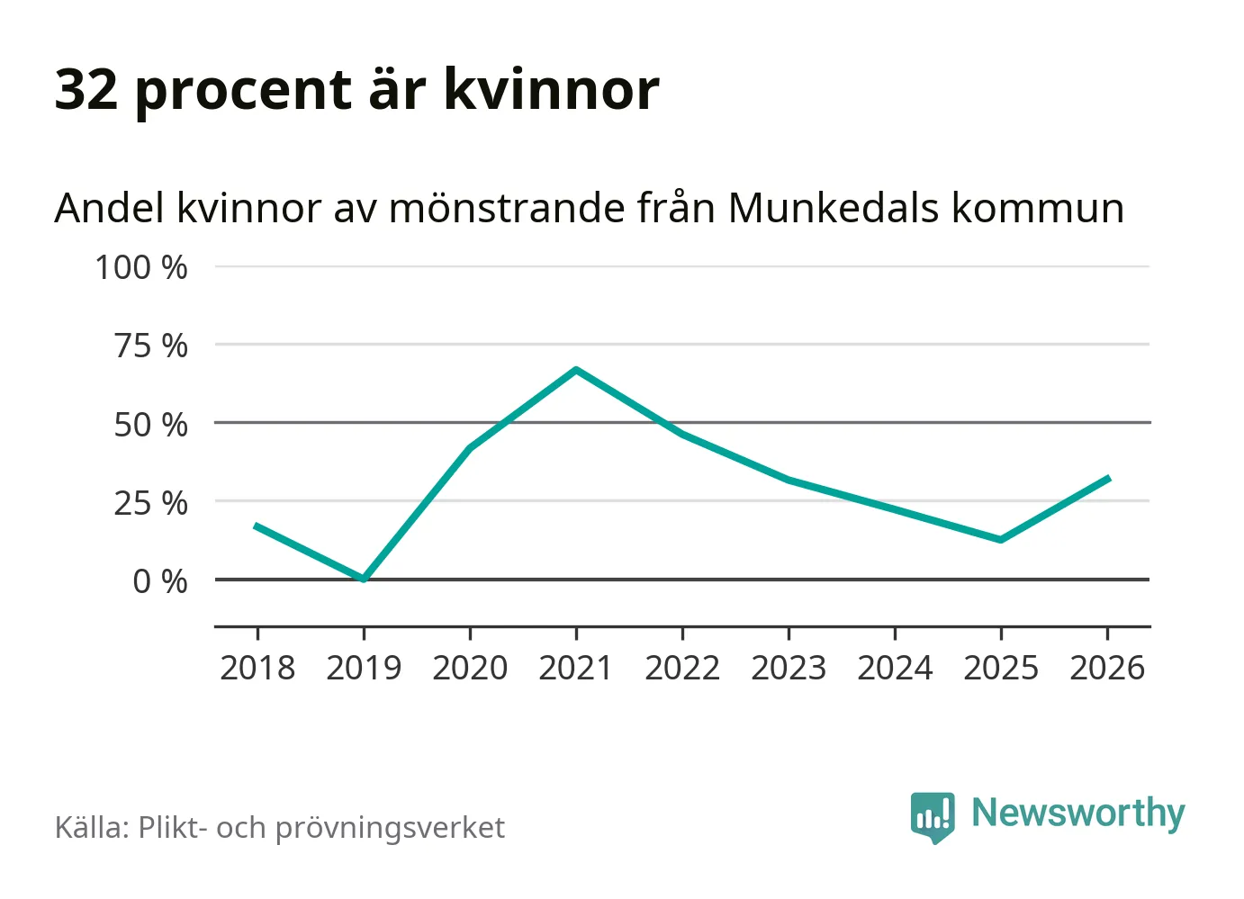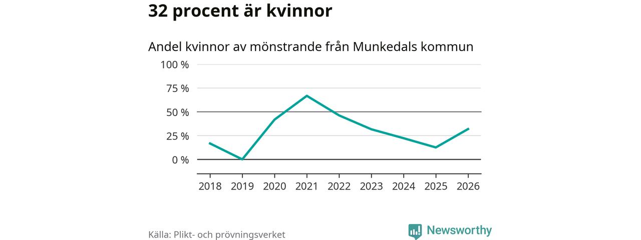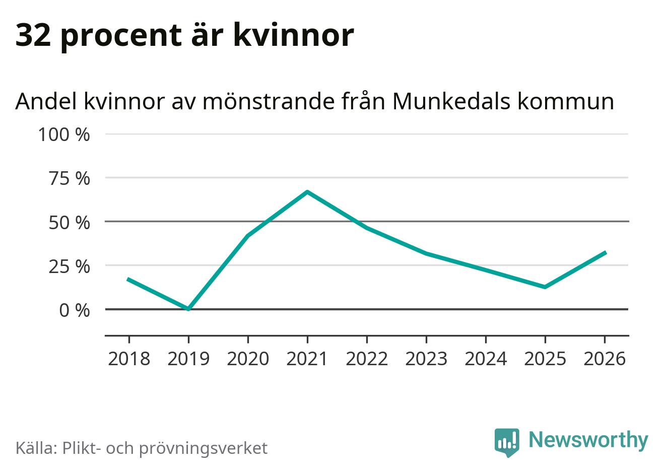 Nu kallas omkring 30 000 svenskar födda 2008 till mönstring. Och 22 av dem kommer från Munkedal, enligt ny statistik från Plikt- och prövningsverket. Det innebär att var sjätte invånare i åldersgruppen i kommunen kallas till mönstring. Det är en lägre andel än i Västra Götaland totalt. I riket som helhet kallas nästan var fjärde person i årskullen.