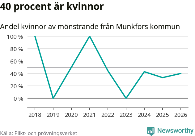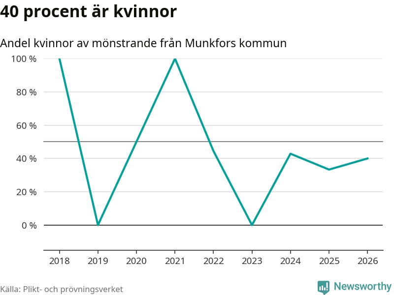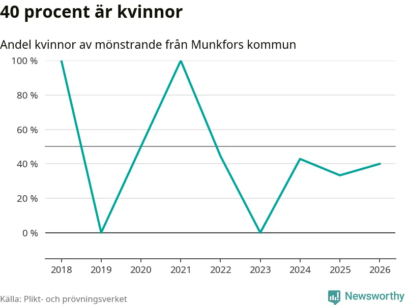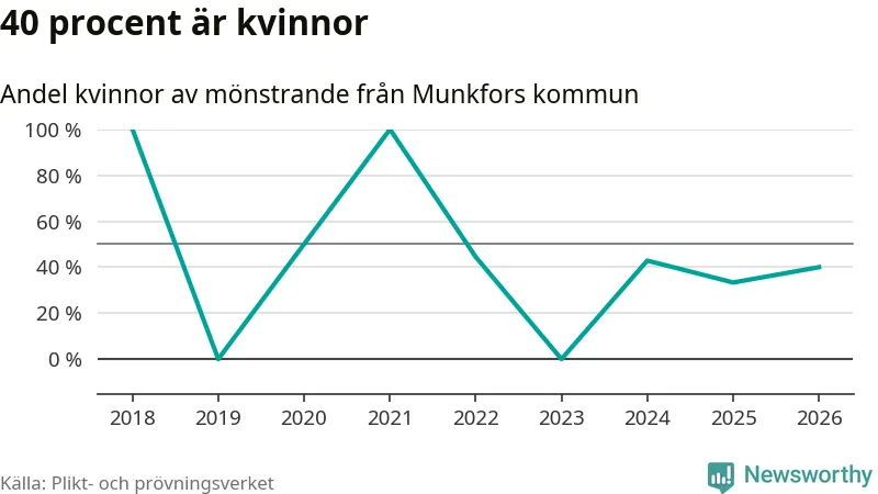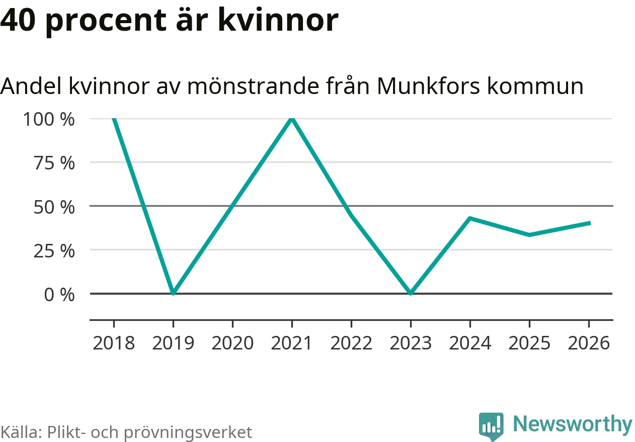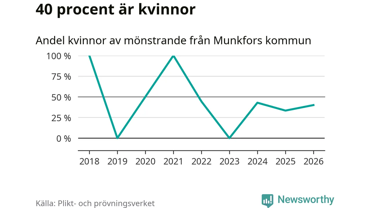 Av de som skrivits in till någon av Försvarmaktens grundutbildningar förra året, 2025, kommer en kvinna från Munkfors. Hon antogs efter att ha kallats till mönstring.