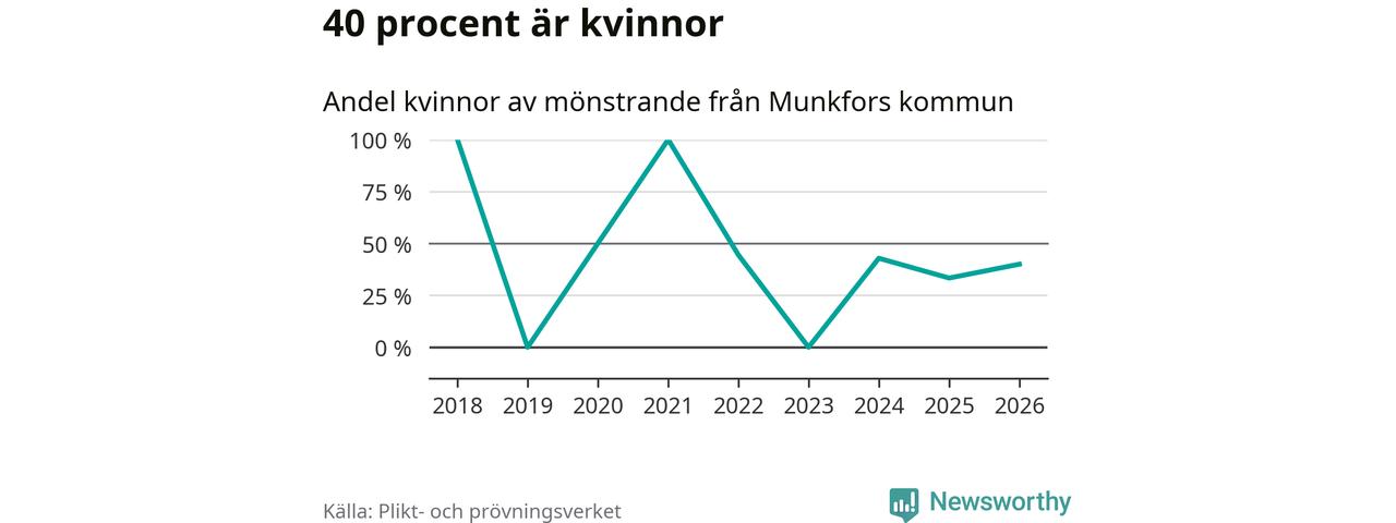 Två av de som kallats till mönstring från Munkfors är kvinnor, vilket motsvarar 40 procent av de mönstrande. Som mest har fyra kvinnor kallats från kommunen (2022). I riket som helhet är 28 procent av de mönstrande tjejer.