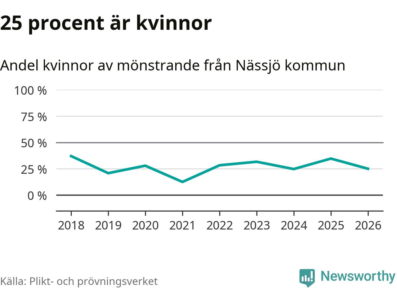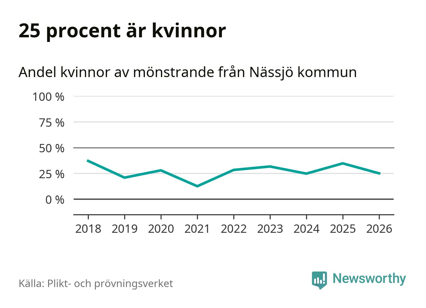 Nu kallas omkring 30 000 svenskar födda 2008 till mönstring. Och 96 av dem kommer från Nässjö, enligt ny statistik från Plikt- och prövningsverket. Det innebär att mer än var fjärde invånare i åldersgruppen i kommunen kallas till mönstring. Det är en högre andel än i Jönköpings län totalt. I riket som helhet kallas nästan var fjärde person i årskullen.