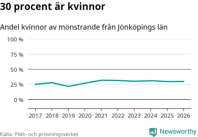 30 procent av de kallade från Jönköpings län är kvinnor