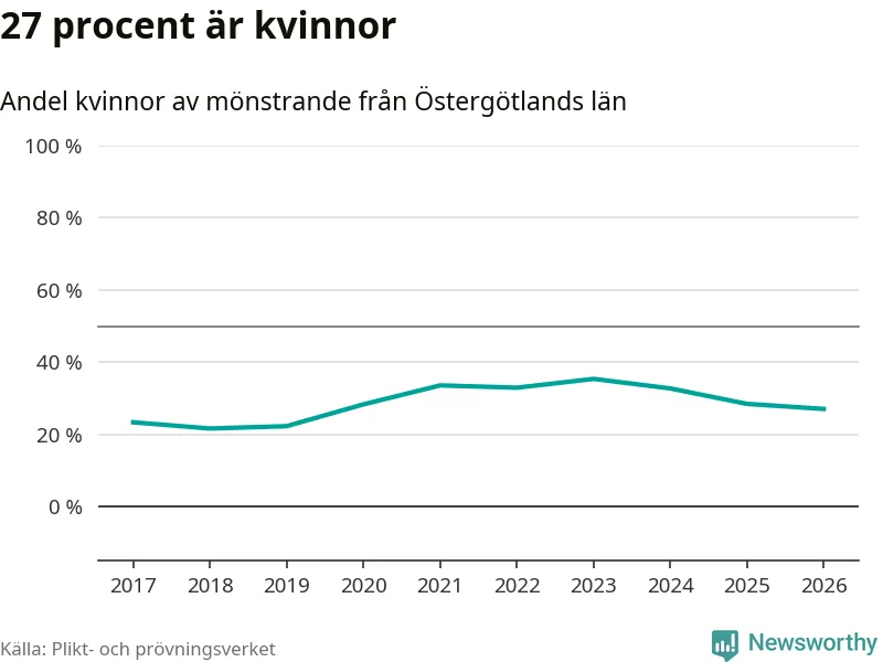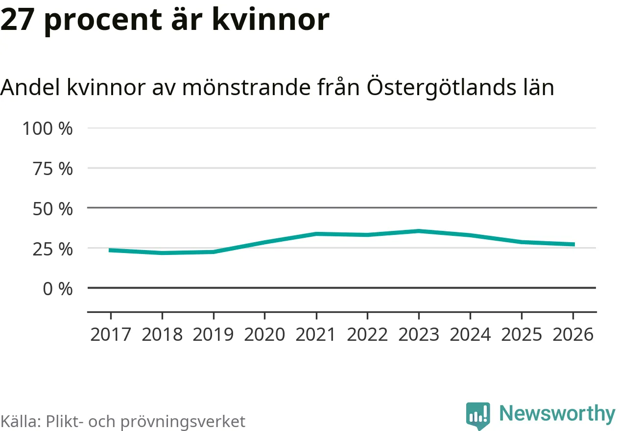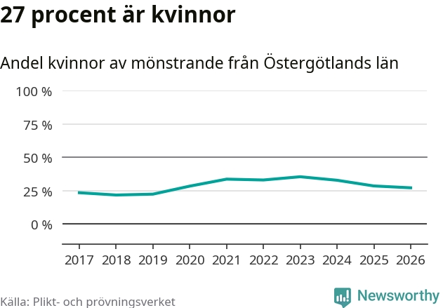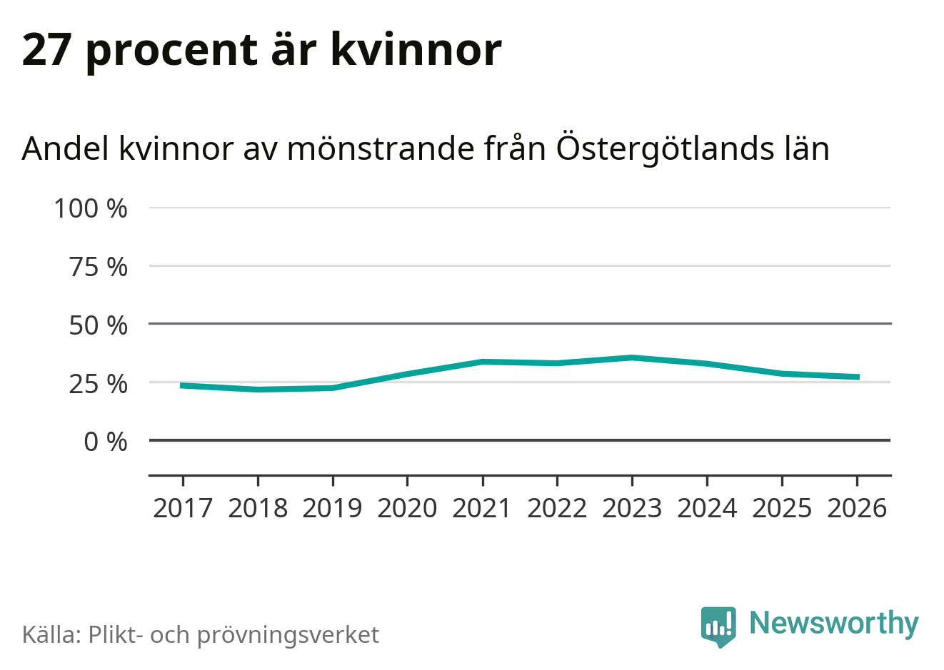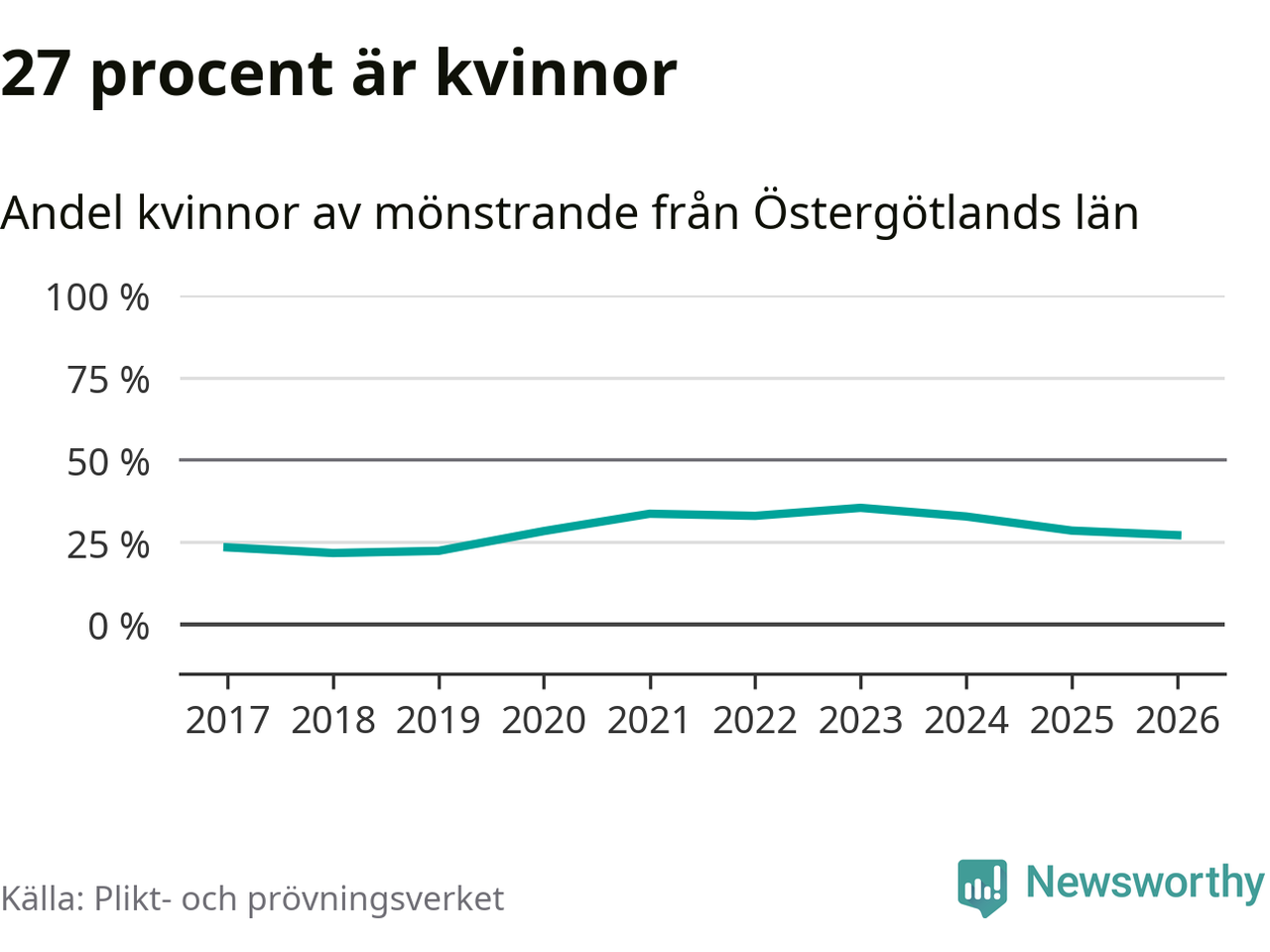 Av de som skrivits in till någon av Försvarmaktens grundutbildningar förra året, 2025, kommer 361 (303 män och 58 kvinnor) från Östergötland. 320 av dessa antogs efter att ha kallats till mönstring.