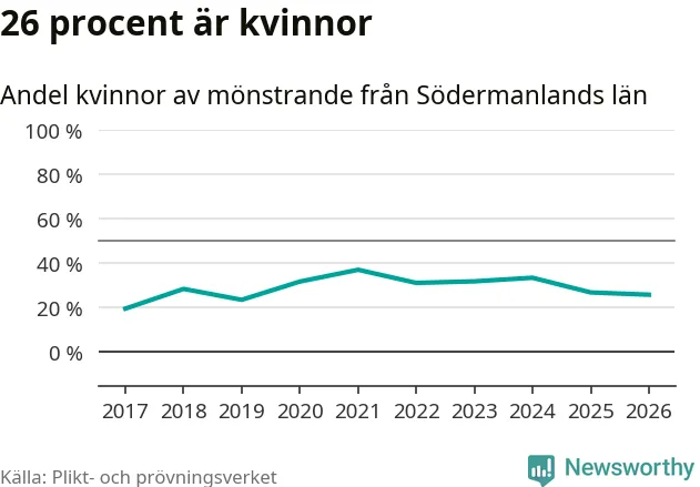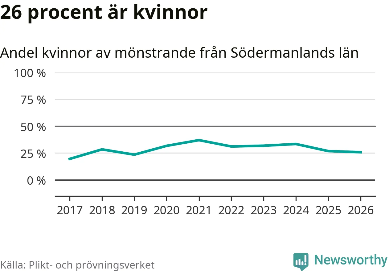 Nu kallas omkring 30 000 svenskar födda 2008 till mönstring. Och 826 av dem kommer från Södermanland, enligt ny statistik från Plikt- och prövningsverket. Det innebär att nästan var fjärde invånare i åldersgruppen i länet kallas till mönstring. Även i riket som helhet kallas nästan var fjärde person i årskullen.