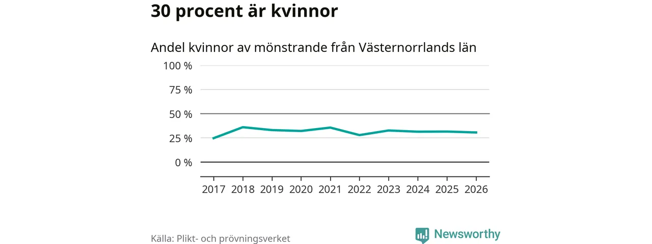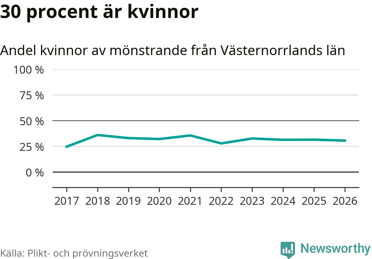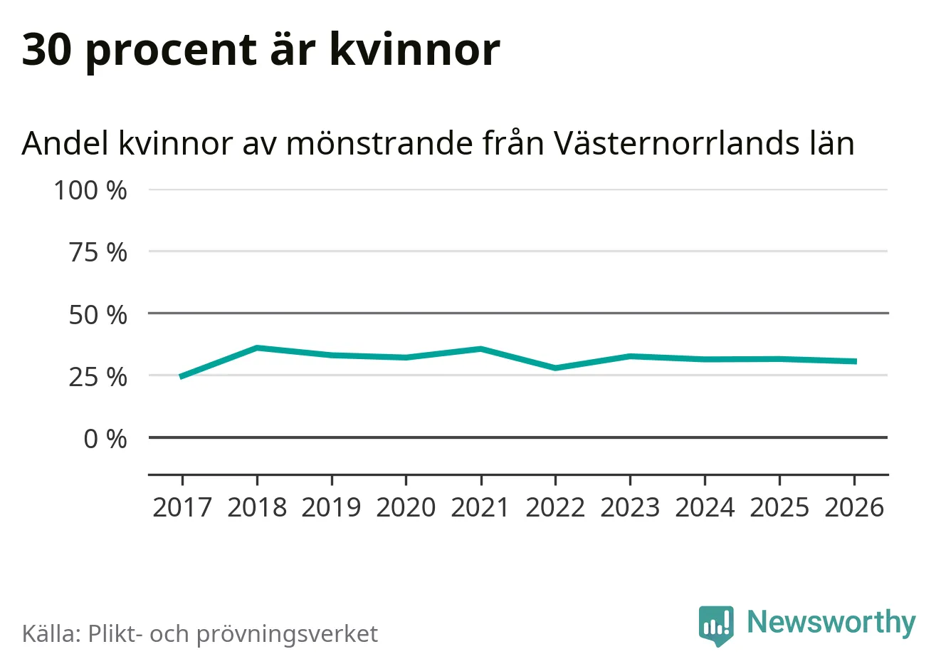 Av de som skrivits in till någon av Försvarmaktens grundutbildningar förra året, 2025, kommer 226 (192 män och 34 kvinnor) från Västernorrland. 206 av dessa antogs efter att ha kallats till mönstring.