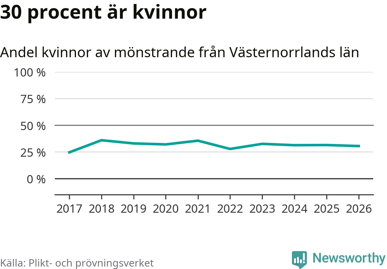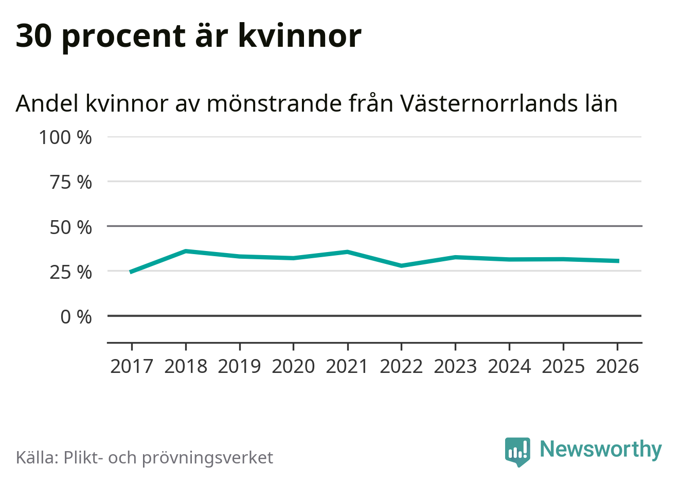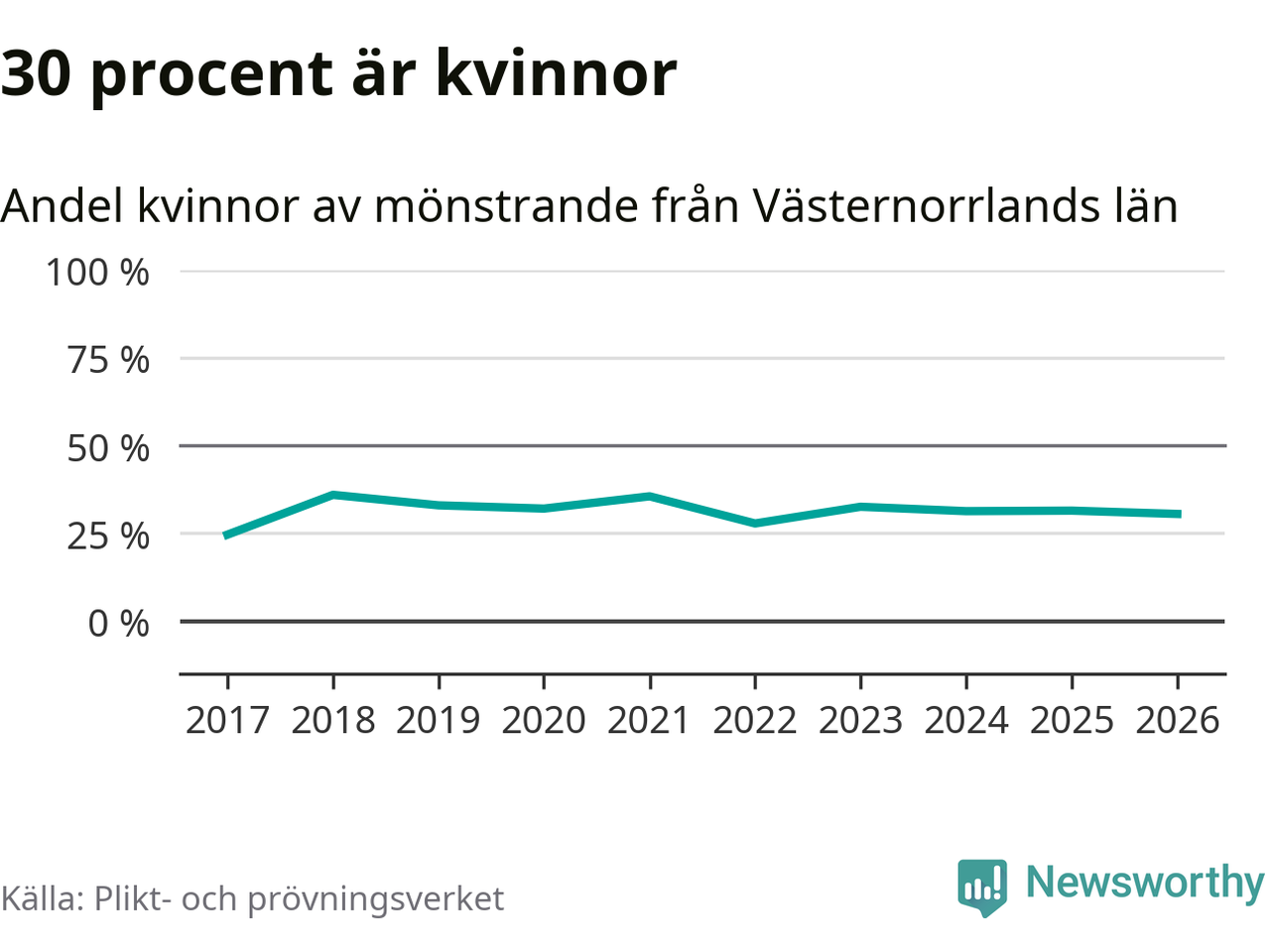 Av de som skrivits in till någon av Försvarmaktens grundutbildningar förra året, 2025, kommer 226 (192 män och 34 kvinnor) från Västernorrland. 206 av dessa antogs efter att ha kallats till mönstring.