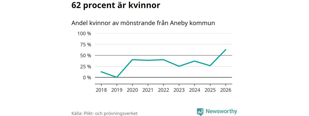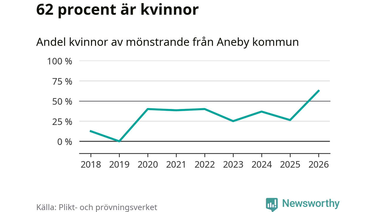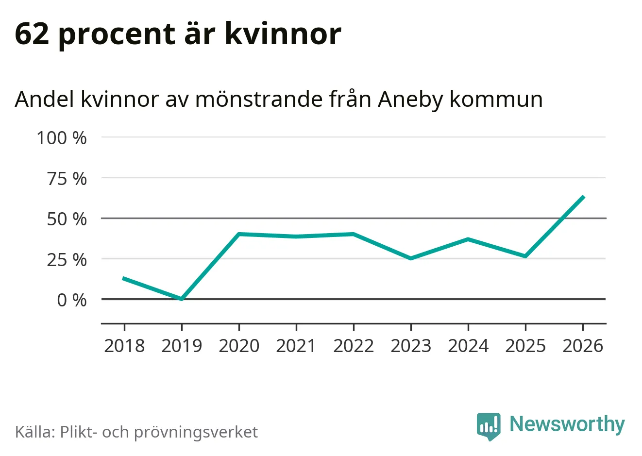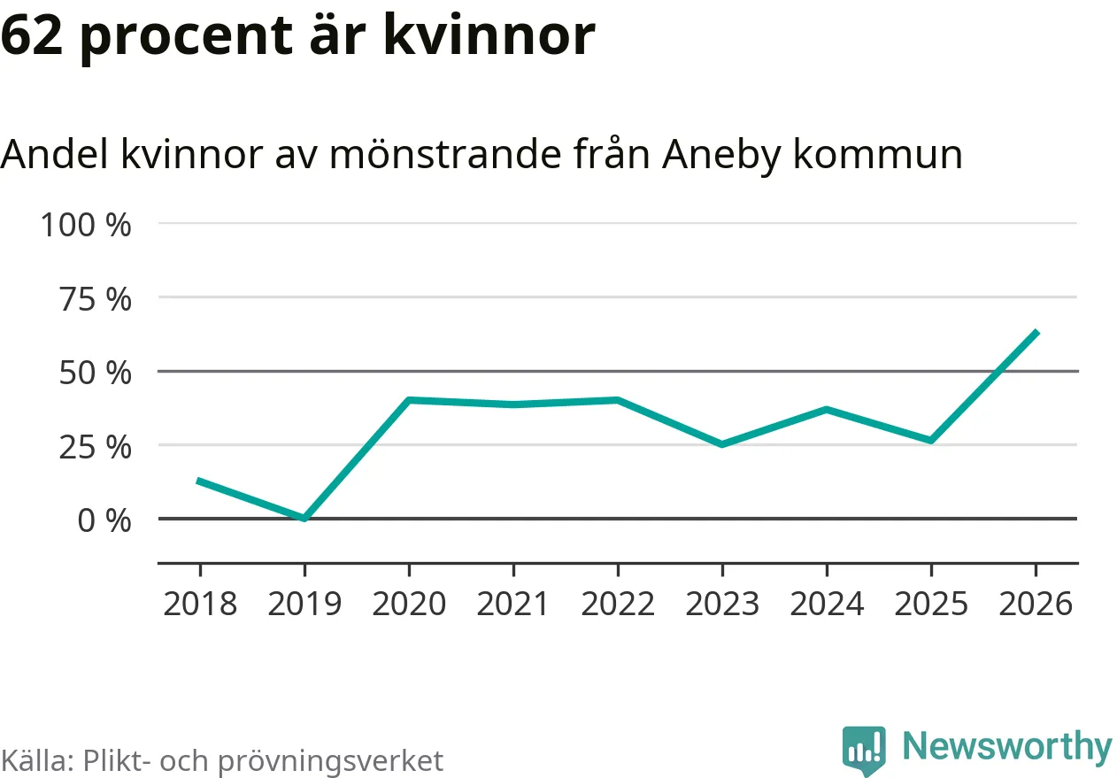 Tio av de som kallats till mönstring från Aneby är kvinnor, vilket motsvarar 63 procent av de mönstrande. Det är fler än något år sedan värnplikten återinfördes. I riket som helhet är 28 procent av de mönstrande tjejer.