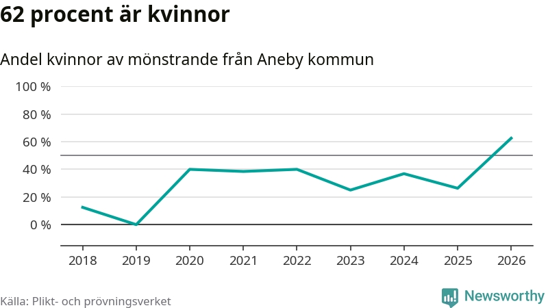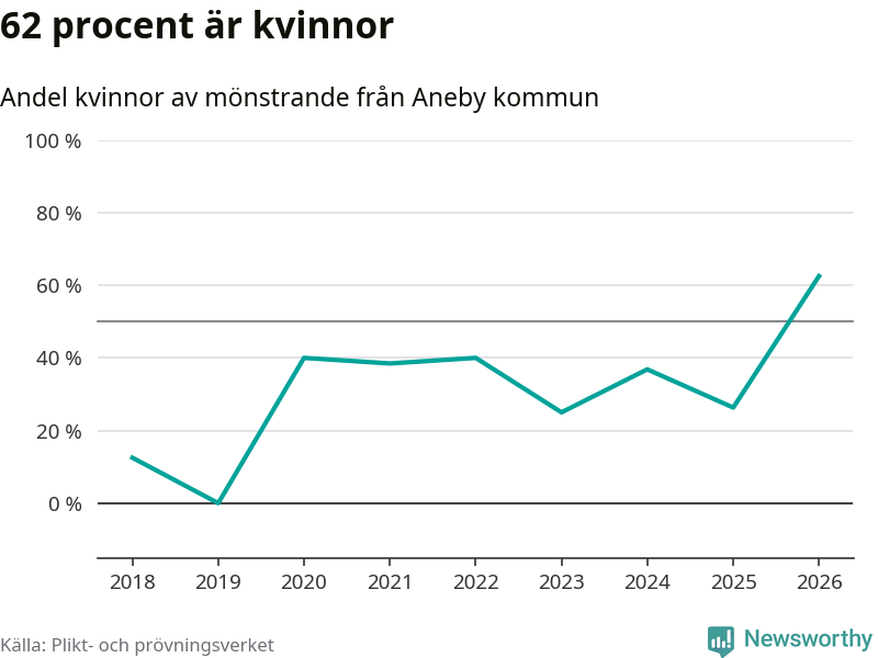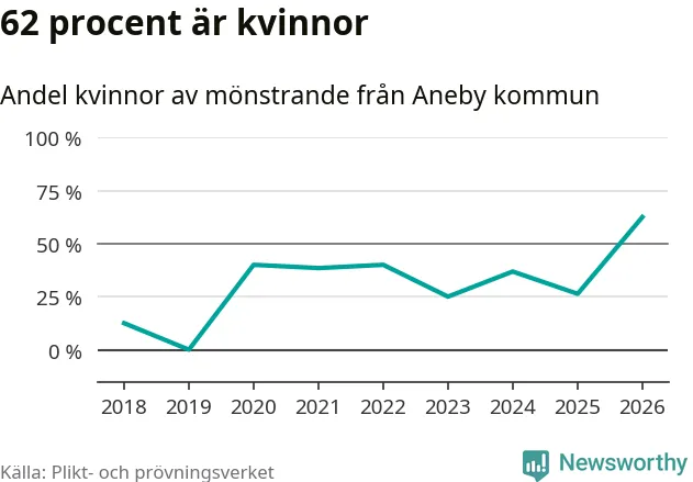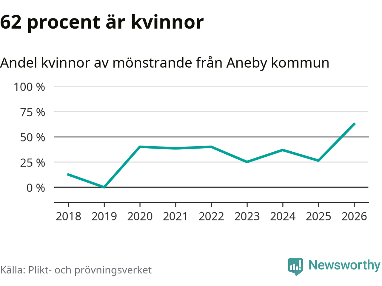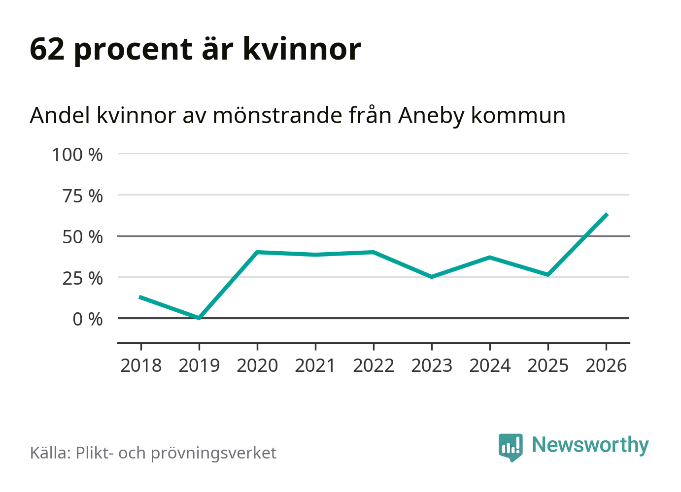 Tio av de som kallats till mönstring från Aneby är kvinnor, vilket motsvarar 63 procent av de mönstrande. Det är fler än något år sedan värnplikten återinfördes. I riket som helhet är 28 procent av de mönstrande tjejer.