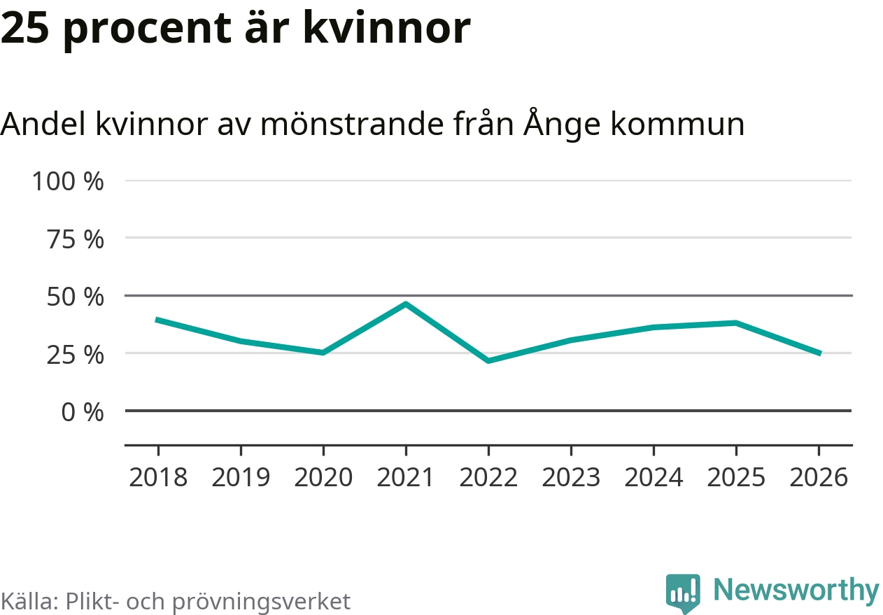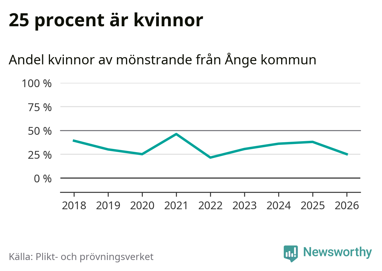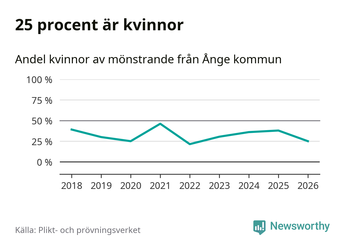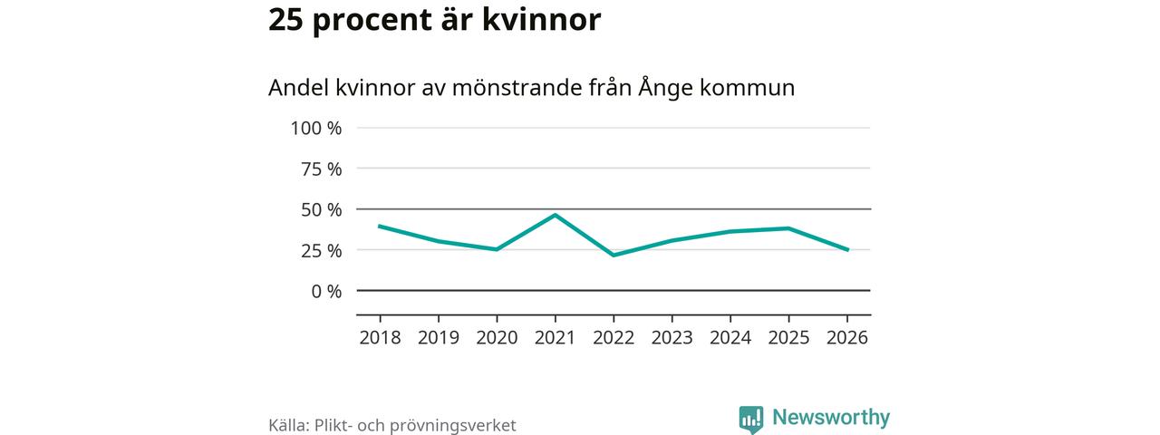 Fem av de som kallats till mönstring från Ånge är kvinnor, vilket motsvarar 25 procent av de mönstrande. Som mest har elva kvinnor kallats från kommunen (2025). I riket som helhet är 28 procent av de mönstrande tjejer.