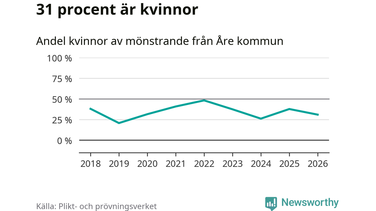 Nu kallas omkring 30 000 svenskar födda 2008 till mönstring. Och 58 av dem kommer från Åre, enligt ny statistik från Plikt- och prövningsverket. Det innebär att två av fem invånare i åldersgruppen i kommunen kallas till mönstring. Det är en högre andel än i Jämtland totalt. I riket som helhet kallas nästan var fjärde person i årskullen.