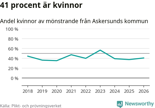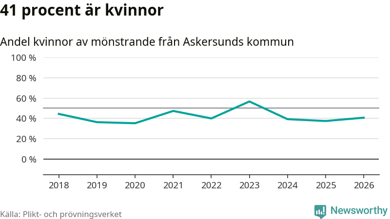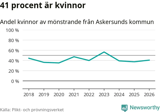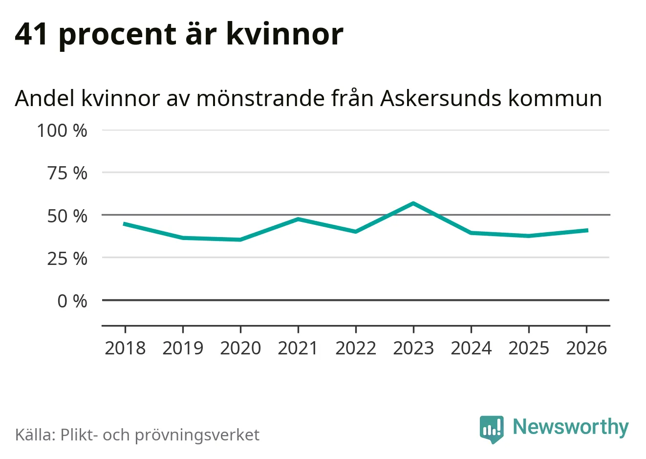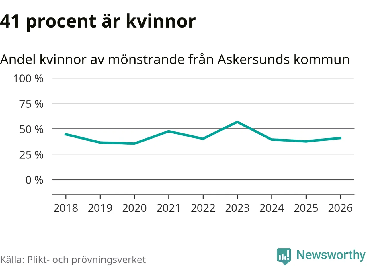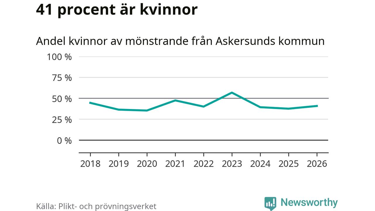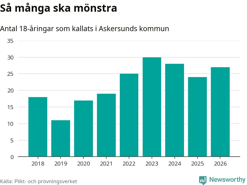 Av de som skrivits in till någon av Försvarmaktens grundutbildningar förra året, 2025, kommer 13 (elva män och två kvinnor) från Askersund. Tolv av dessa antogs efter att ha kallats till mönstring.