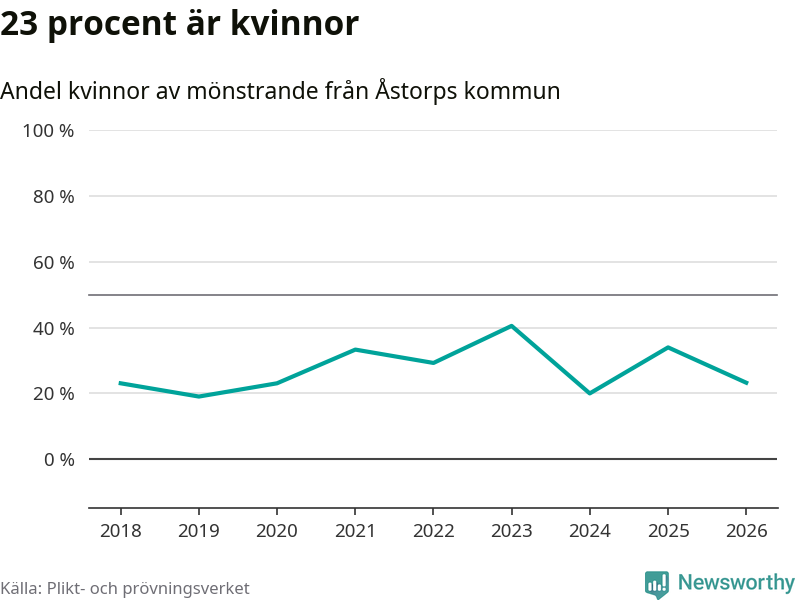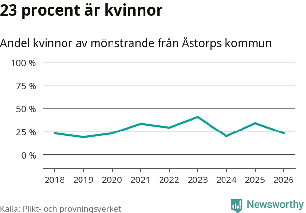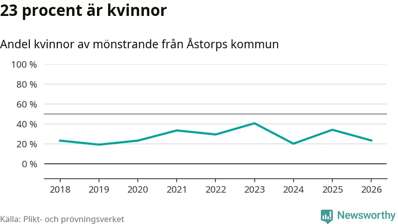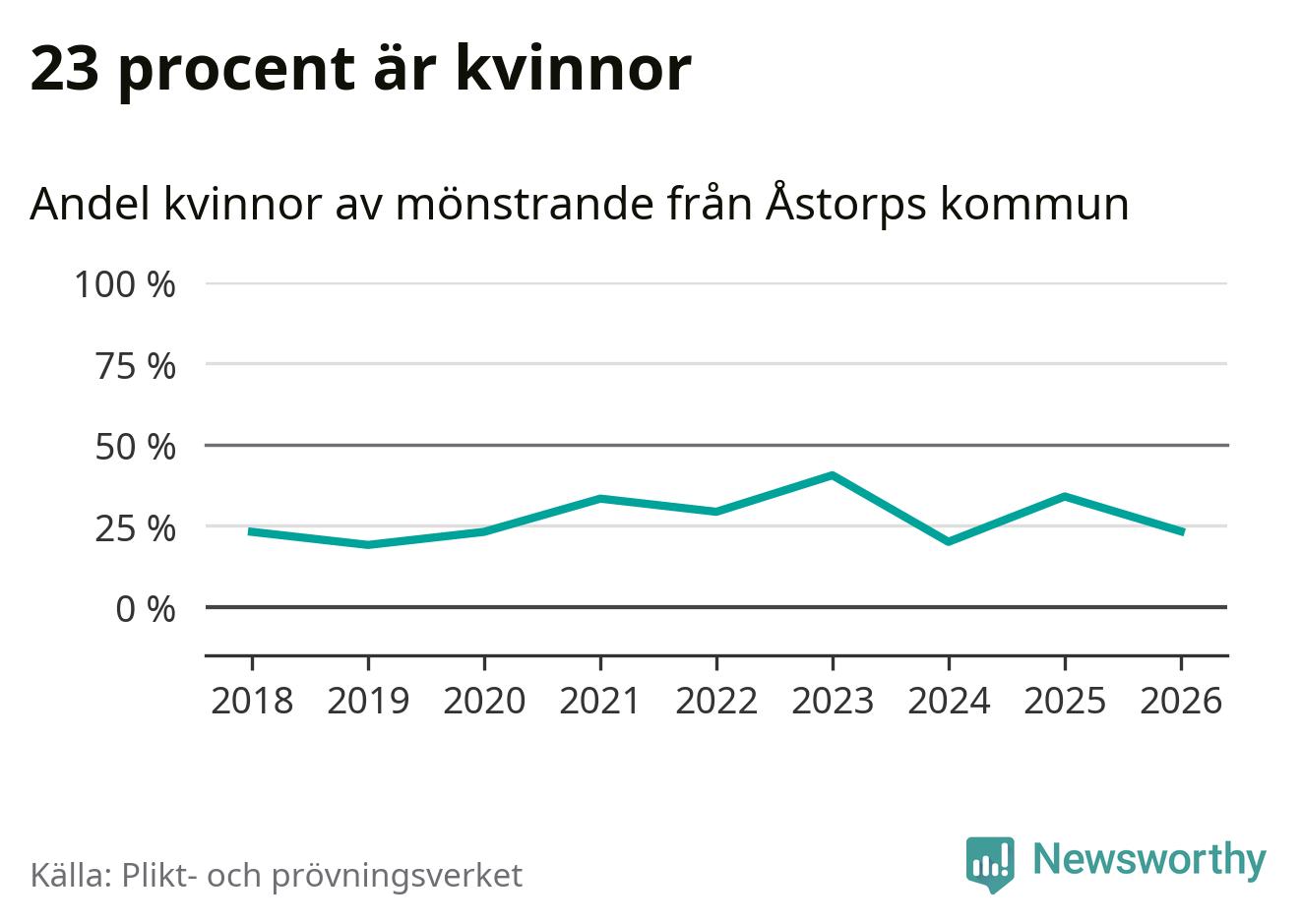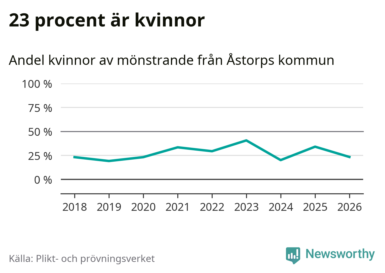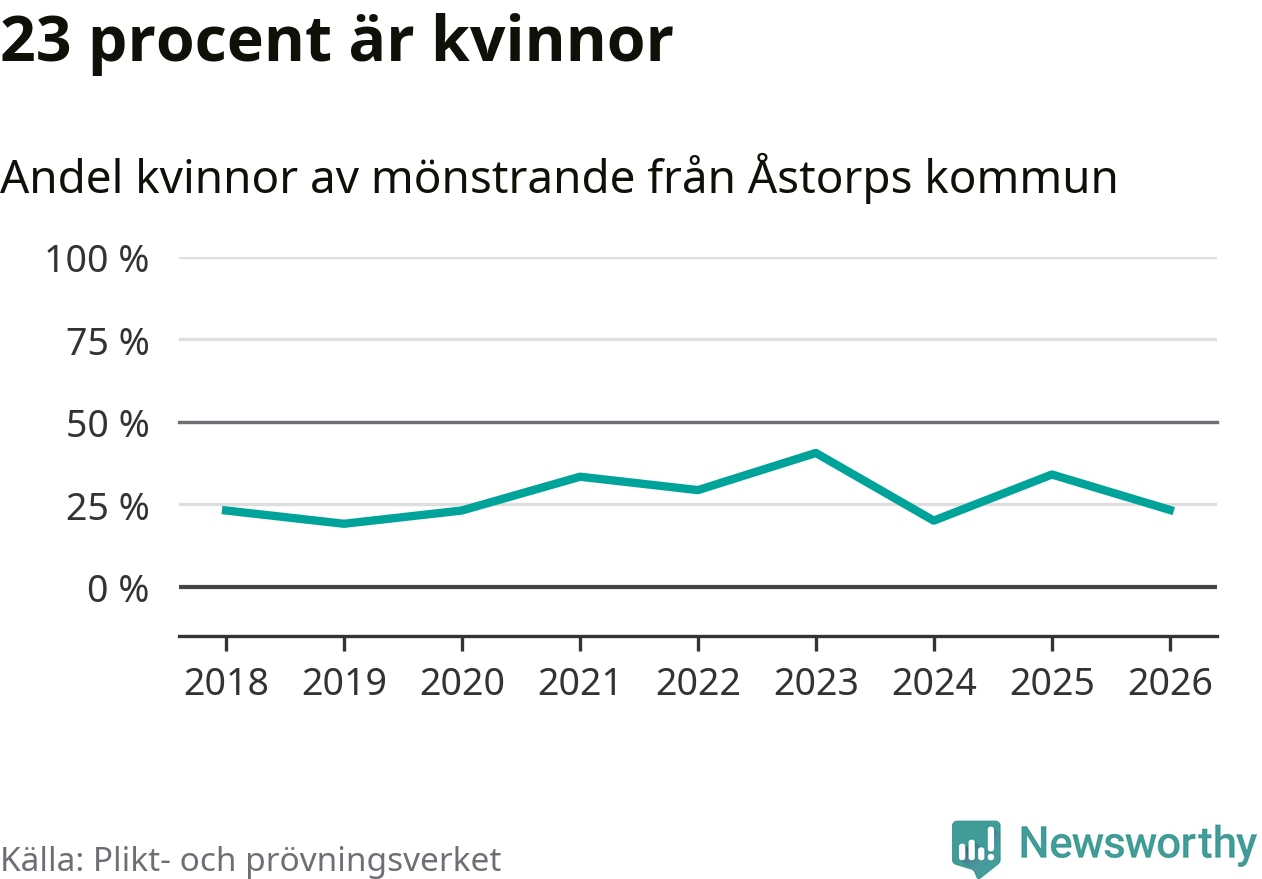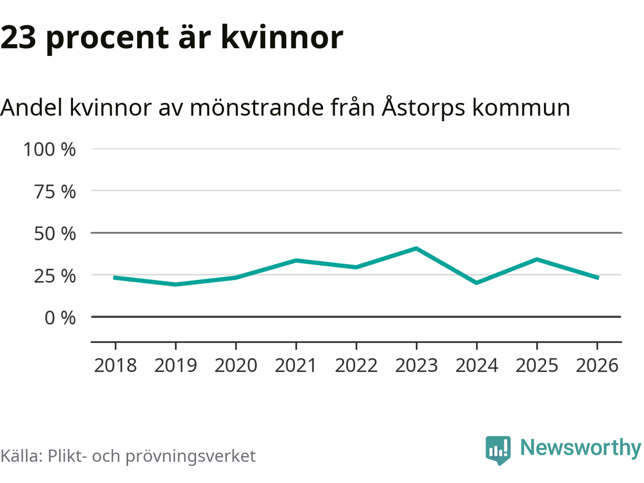 Nu kallas omkring 30 000 svenskar födda 2008 till mönstring. Och 43 av dem kommer från Åstorp, enligt ny statistik från Plikt- och prövningsverket. Det innebär att var sjätte invånare i åldersgruppen i kommunen kallas till mönstring. Det är en lägre andel än i Skåne totalt. I riket som helhet kallas nästan var fjärde person i årskullen.