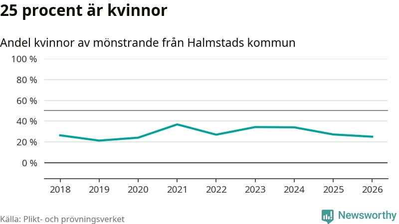 25 procent av de kallade från Halmstad är kvinnor