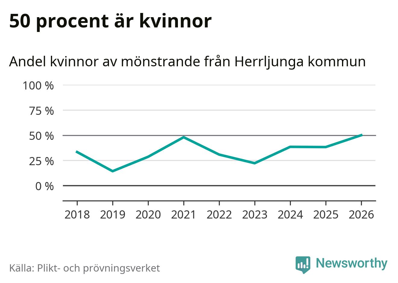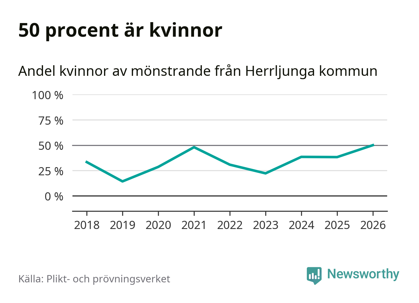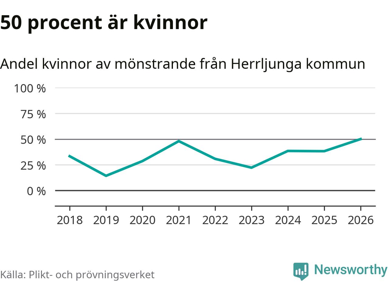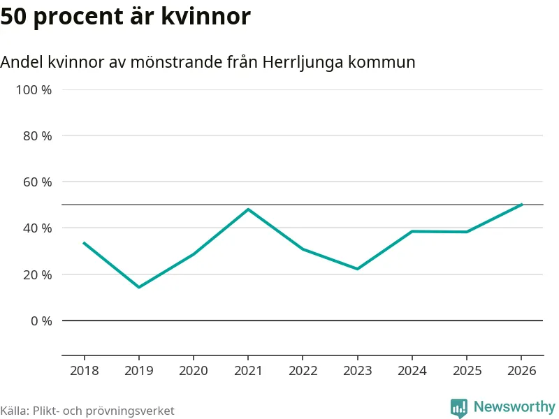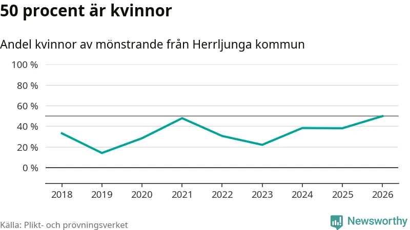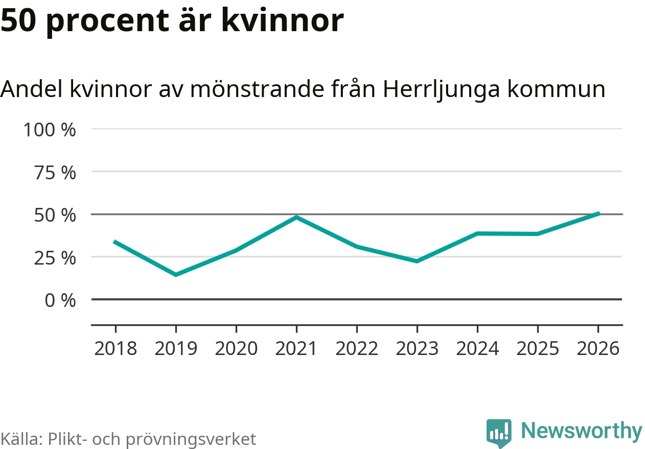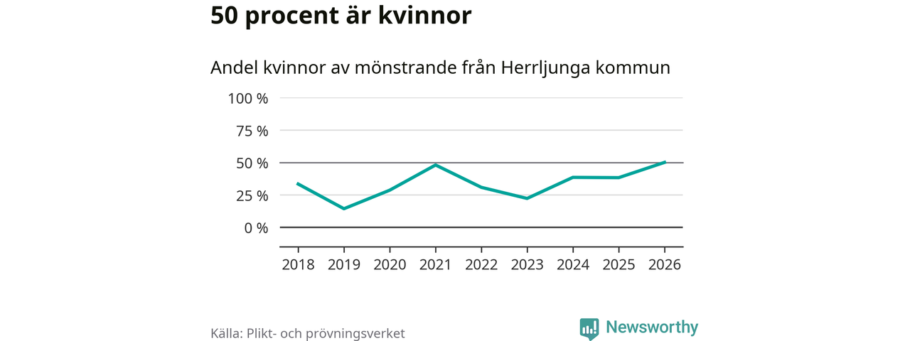 Nio av de som kallats till mönstring från Herrljunga är kvinnor, vilket motsvarar 50 procent av de mönstrande. Det är en rekordstor andel av de mönstrande, men 2025 var det fler kvinnor från kommunen – 13 stycken – som mönstrade. I riket som helhet är 28 procent av de mönstrande tjejer.