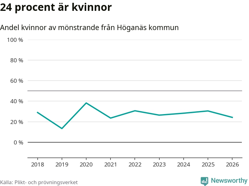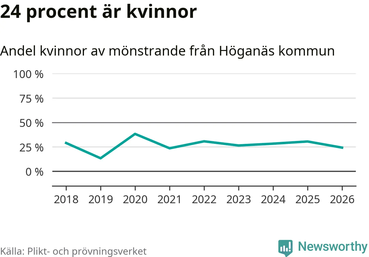 23 av de som kallats till mönstring från Höganäs är kvinnor, vilket motsvarar 24 procent av de mönstrande. Som mest har 32 kvinnor kallats från kommunen (2025). I riket som helhet är 28 procent av de mönstrande tjejer.