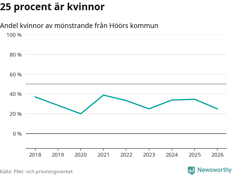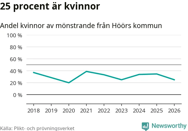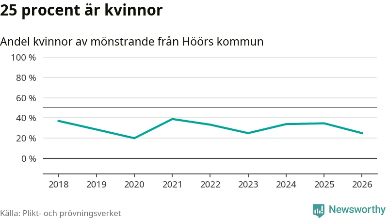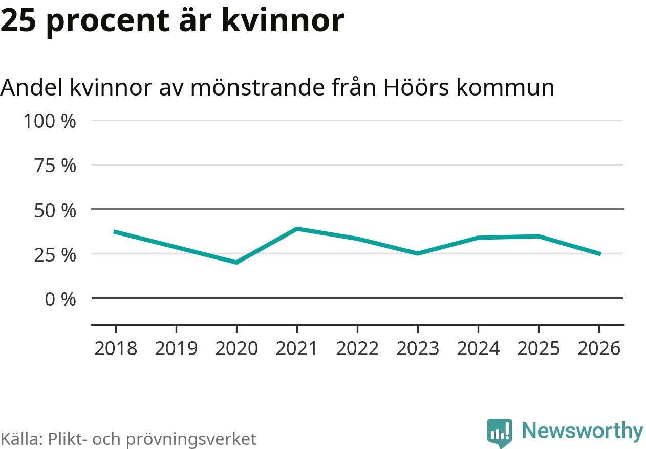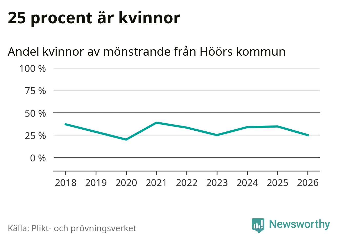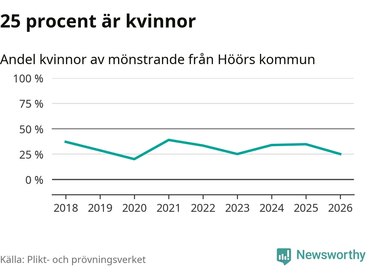 Nu kallas omkring 30 000 svenskar födda 2008 till mönstring. Och 64 av dem kommer från Höör, enligt ny statistik från Plikt- och prövningsverket. Det innebär att mer än var fjärde invånare i åldersgruppen i kommunen kallas till mönstring. Det är en högre andel än i Skåne totalt. I riket som helhet kallas nästan var fjärde person i årskullen.