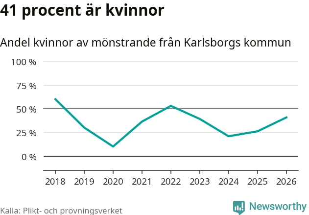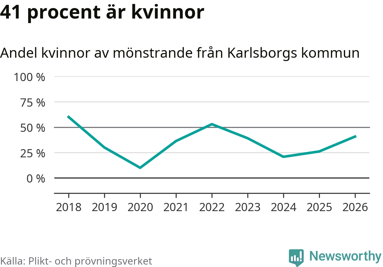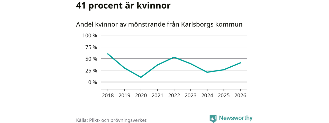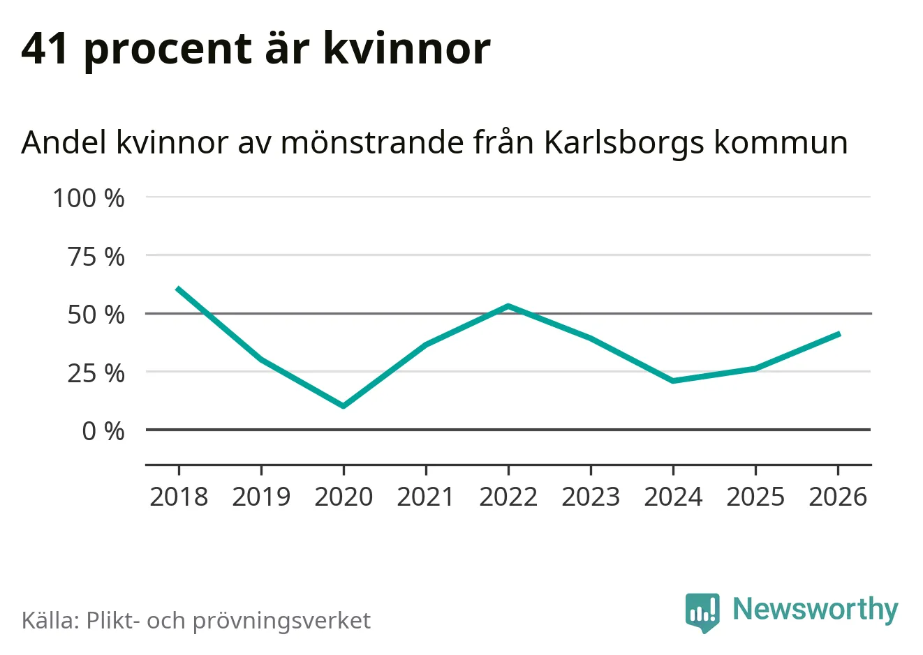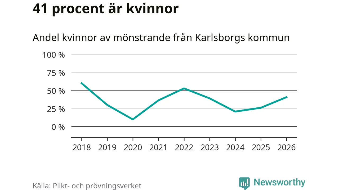 27 personer är det högsta antalet kallade i Karlsborg sedan 2018, som är första året med statistik på kommunnivå (värnplikten återinfördes 2017), och fyra mönstrande fler än 2025. Totalt från Västra Götalands län kallas 4 609 personer i år.