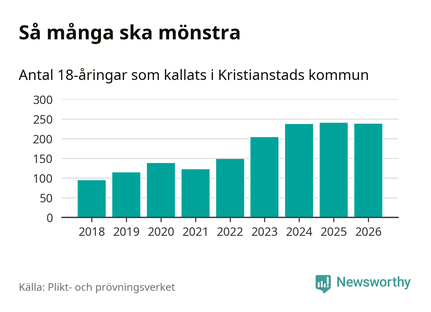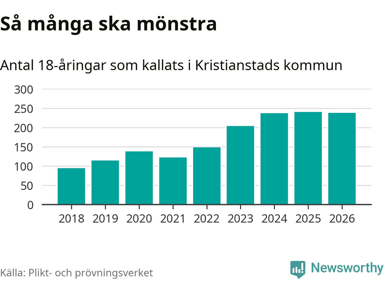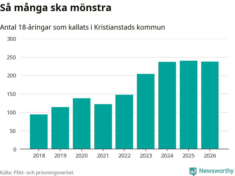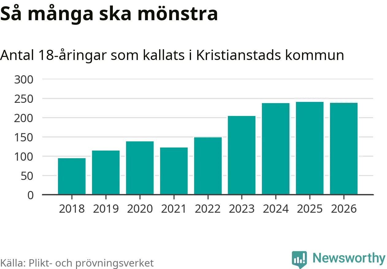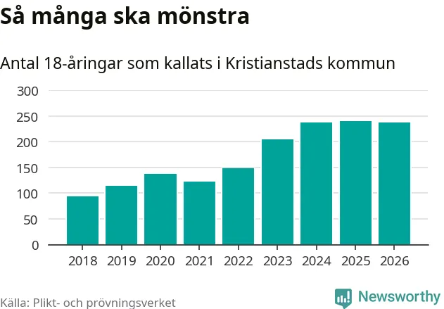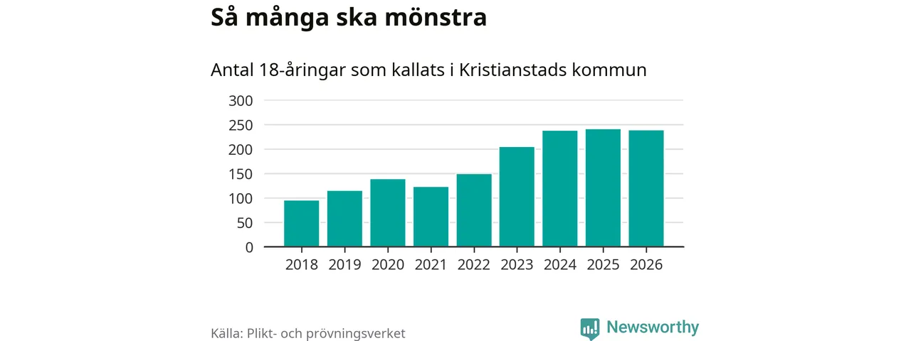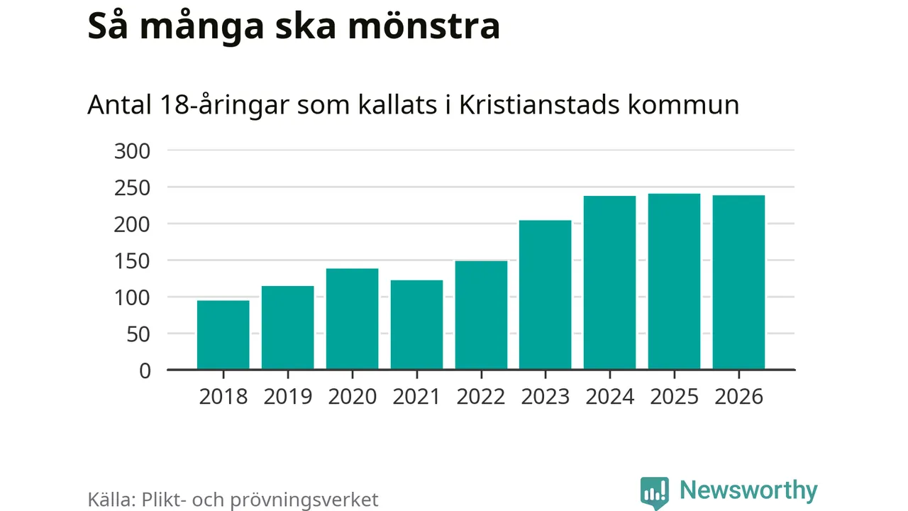 I takt med att värnplikten byggs ut ökar antalet 18-åringar som kallas till mönstring. Från Kristianstads kommun kallas 163 killar och 75 tjejer.
