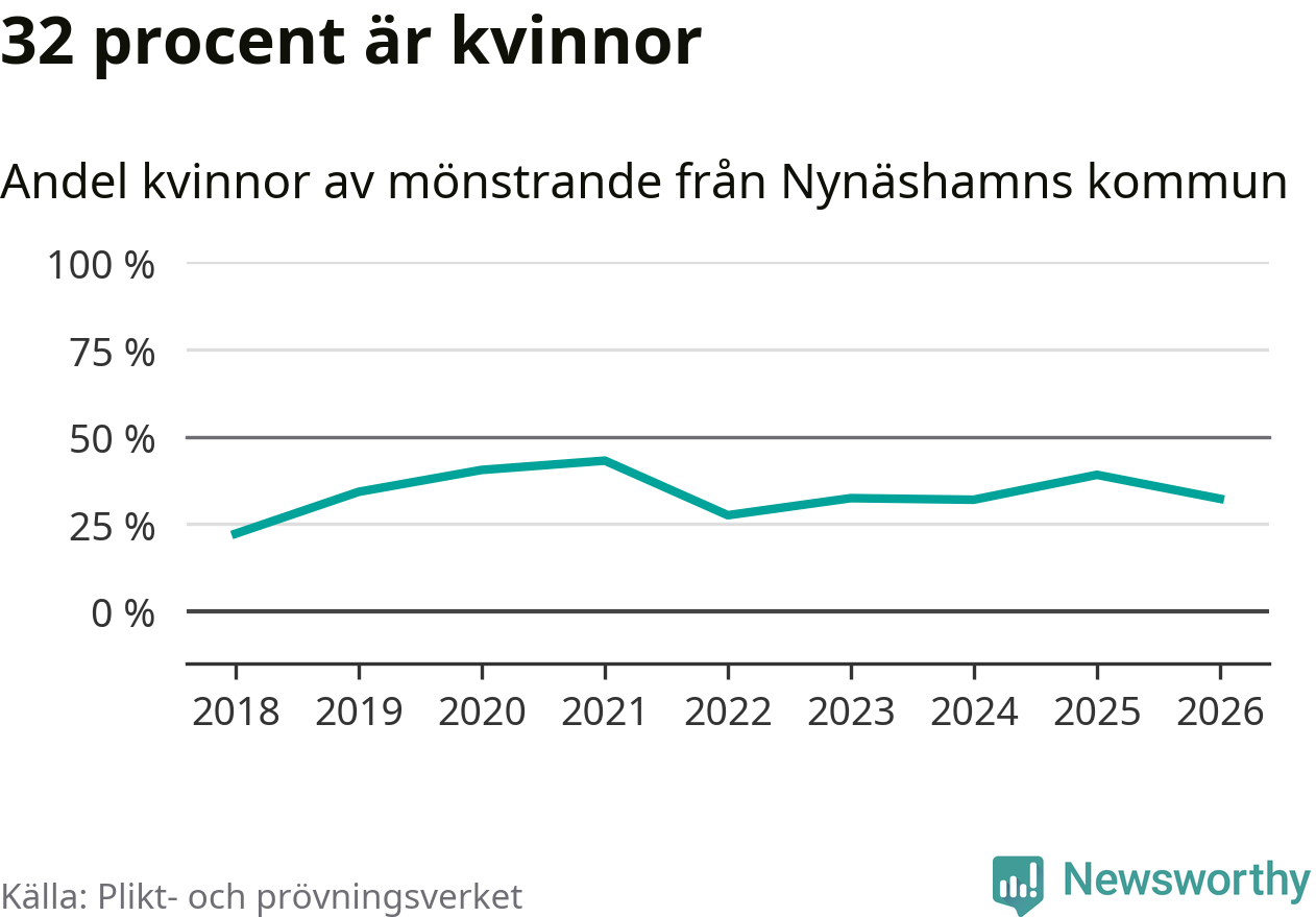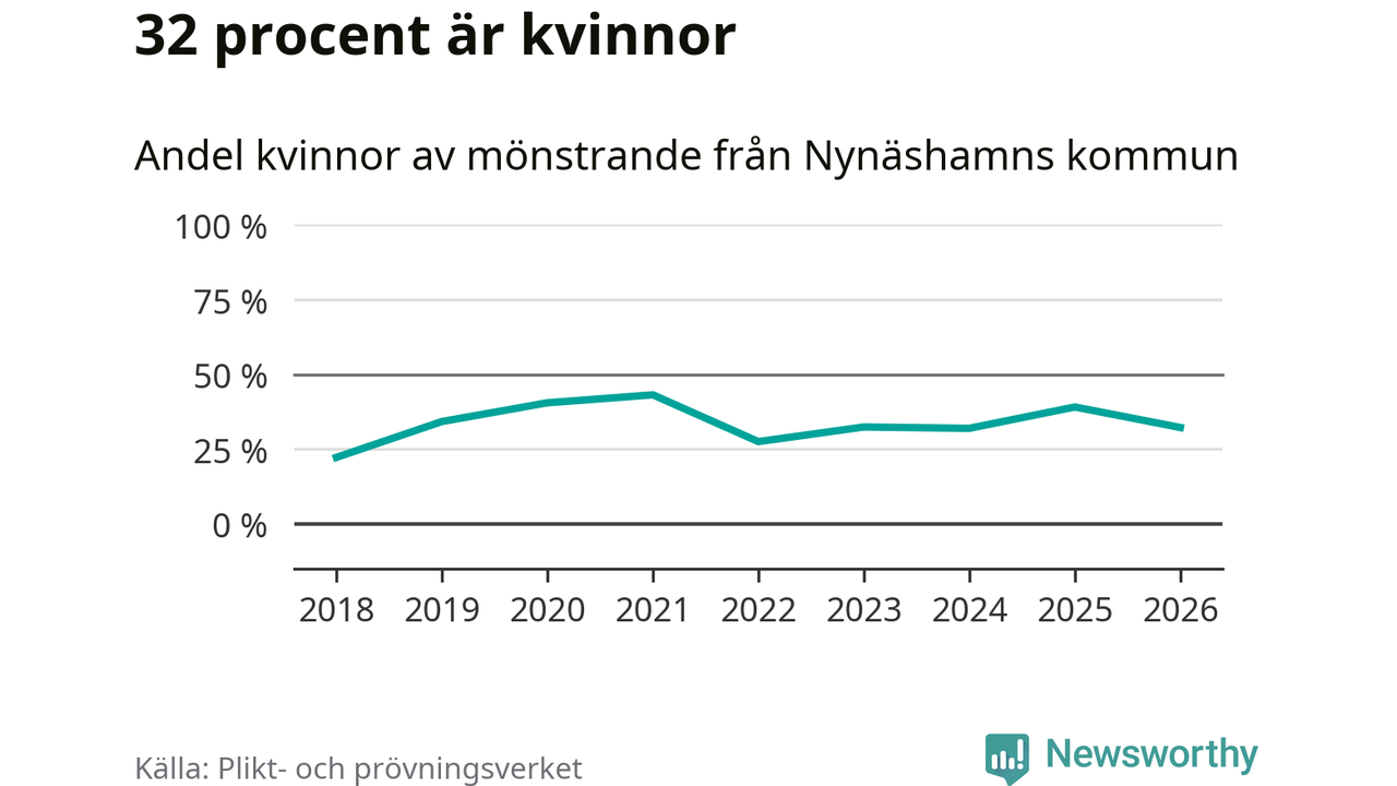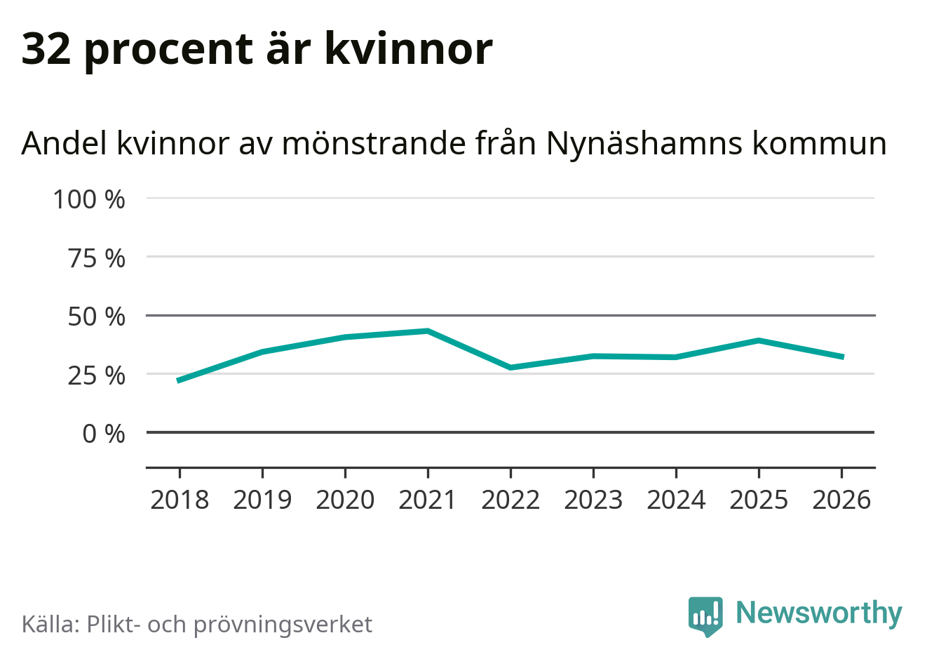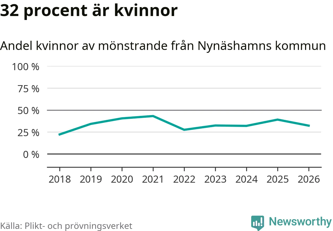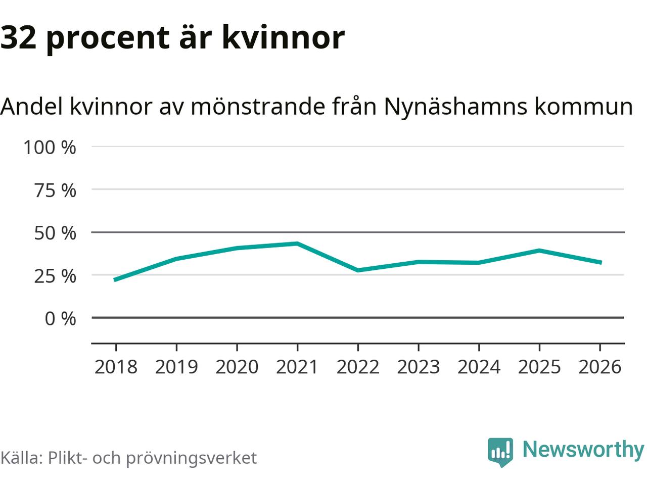 Av de som skrivits in till någon av Försvarmaktens grundutbildningar förra året, 2025, kommer 25 (21 män och fyra kvinnor) från Nynäshamn. 21 av dessa antogs efter att ha kallats till mönstring.
