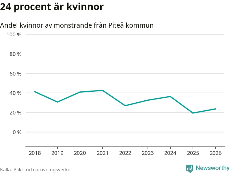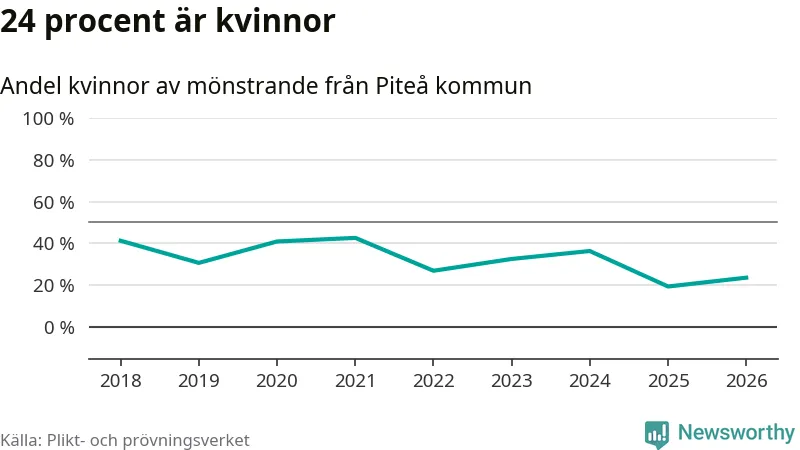 Av de som skrivits in till någon av Försvarmaktens grundutbildningar förra året, 2025, kommer 29 (22 män och sju kvinnor) från Piteå. Samtliga antogs efter att ha kallats till mönstring.