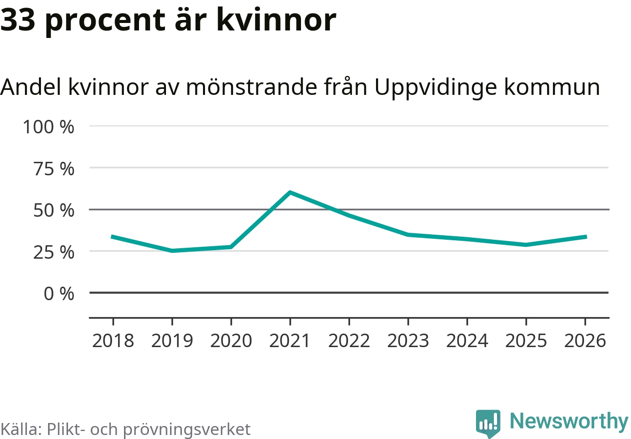 33 procent av de kallade från Uppvidinge är kvinnor