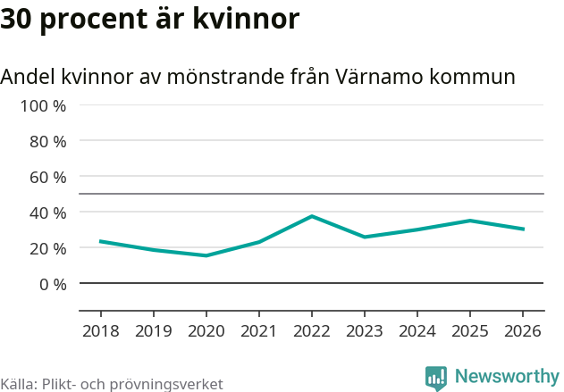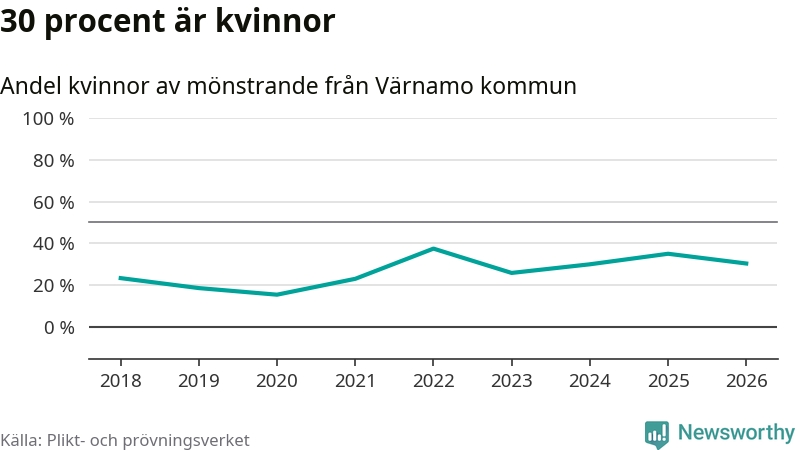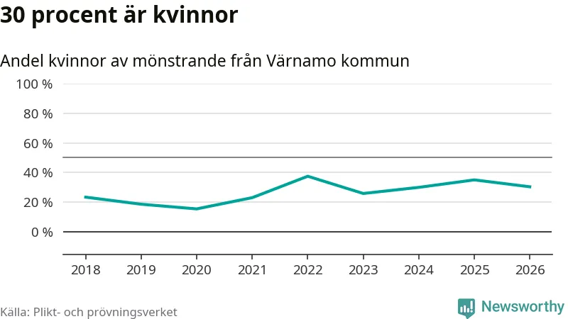 30 procent av de kallade från Värnamo är kvinnor