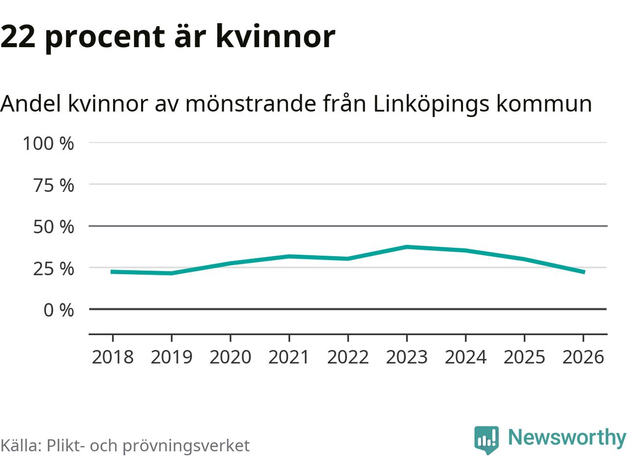 105 av de som kallats till mönstring från Linköping är kvinnor, vilket motsvarar 22 procent av de mönstrande. Som mest har 160 kvinnor kallats från kommunen (2024). I riket som helhet är 28 procent av de mönstrande tjejer.