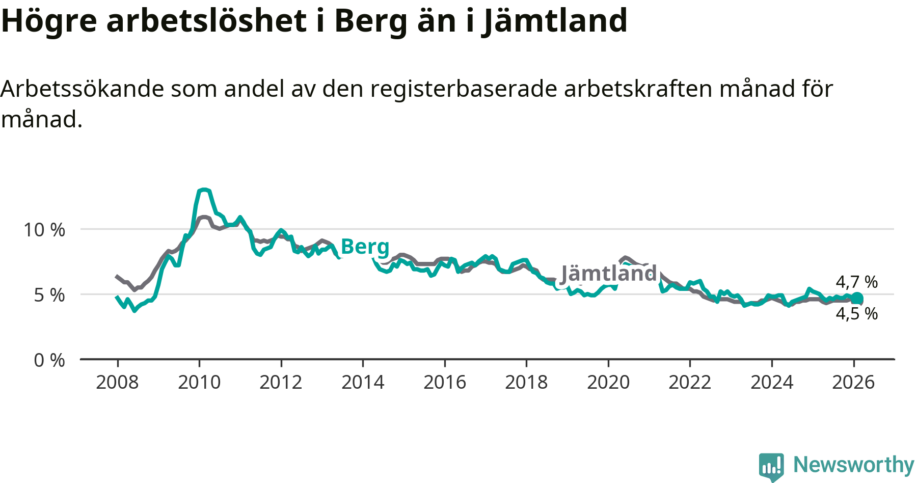 Graf: Arbetslöshet i Bergs kommun och Jämtlands län