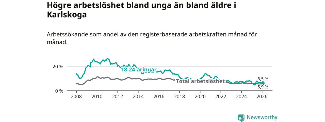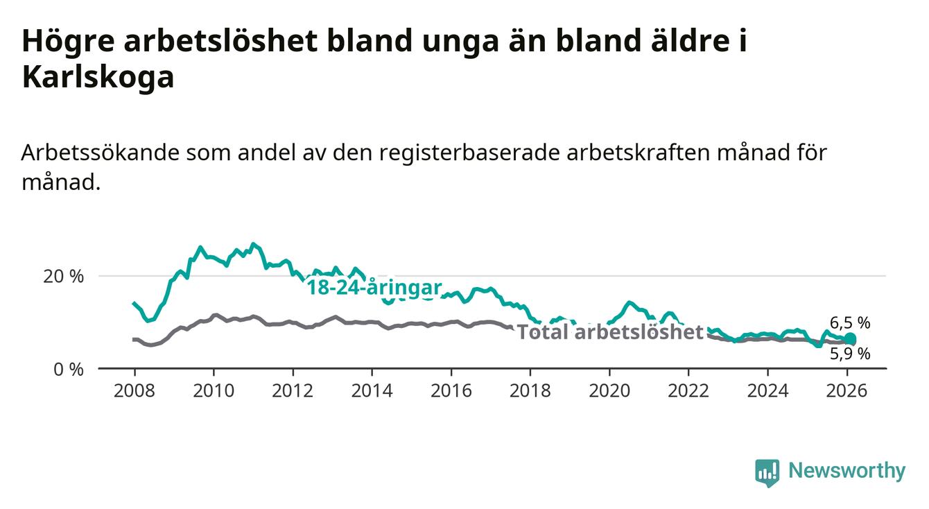 | Karlskoga | 5,9 % | −0,1 % ▼ |