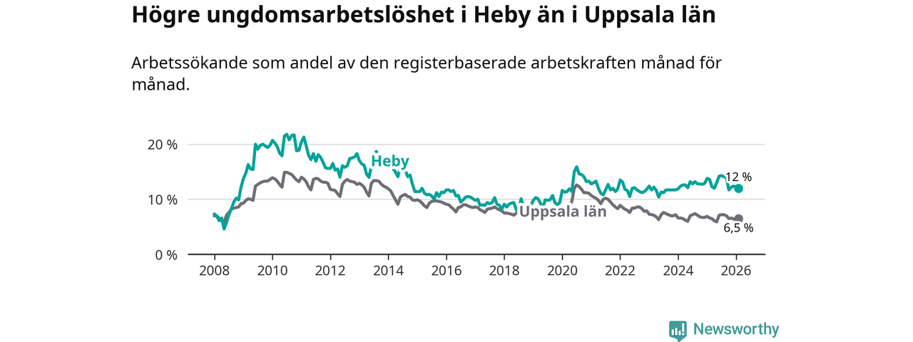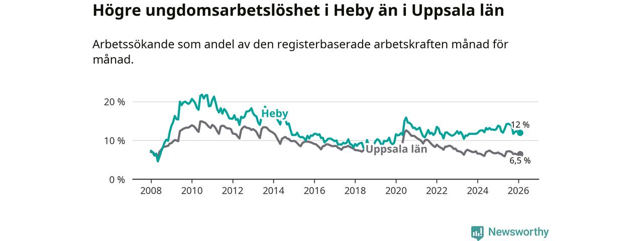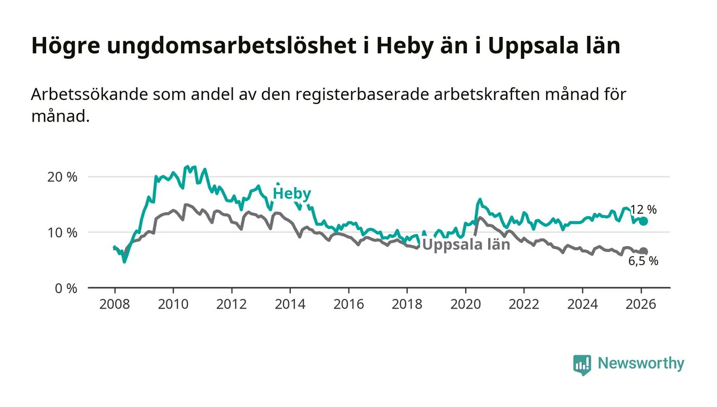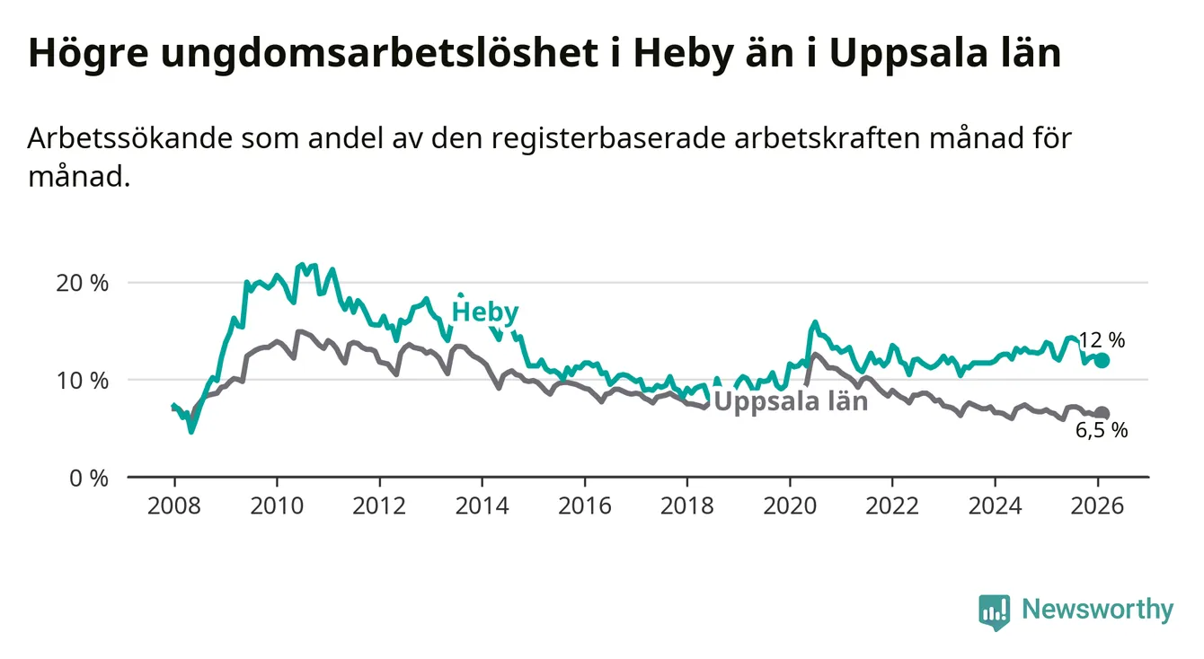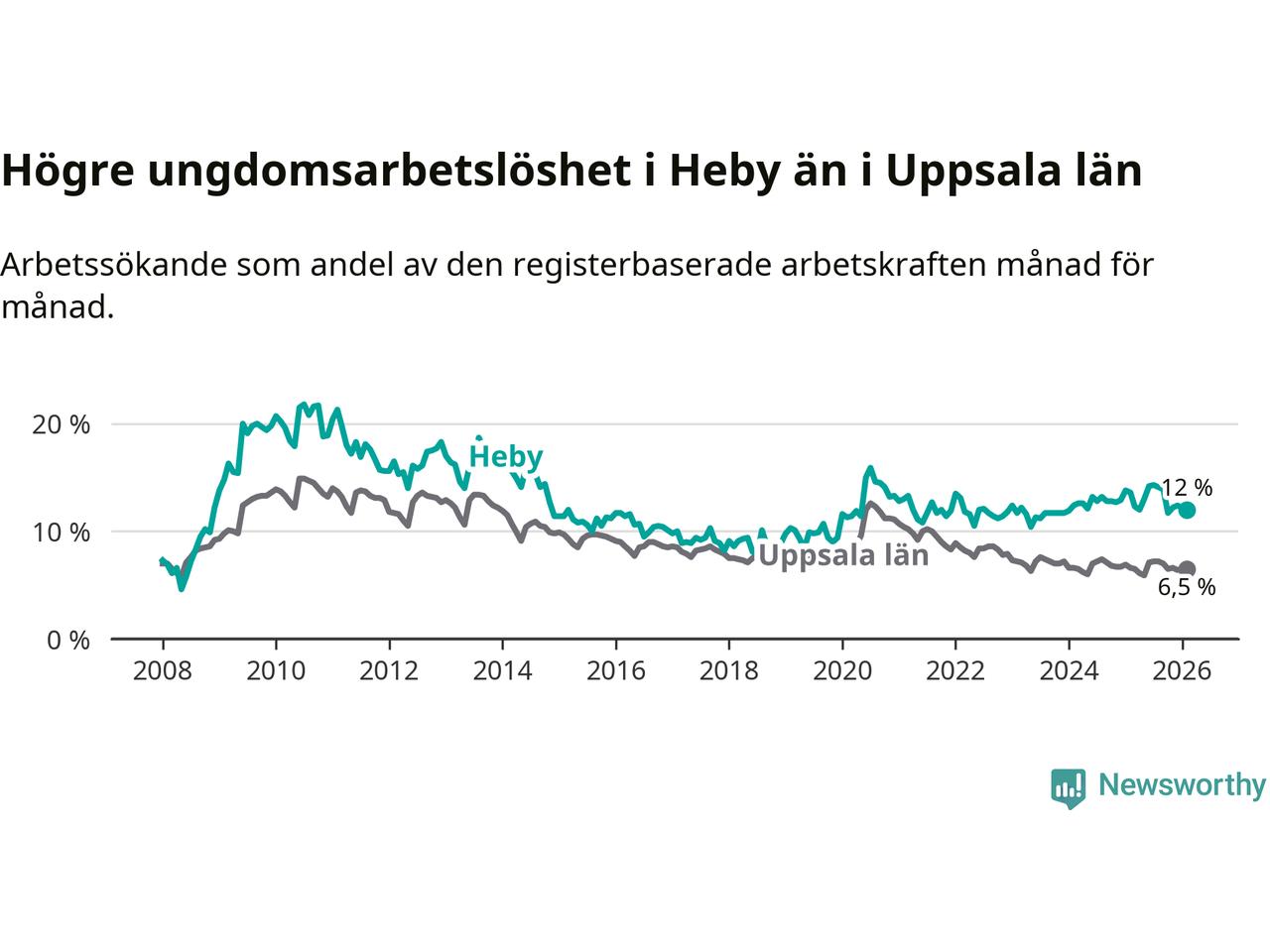 Graf: Arbetslöshet bland unga i Heby kommun och Uppsala län