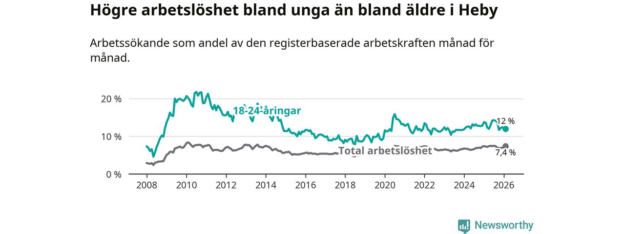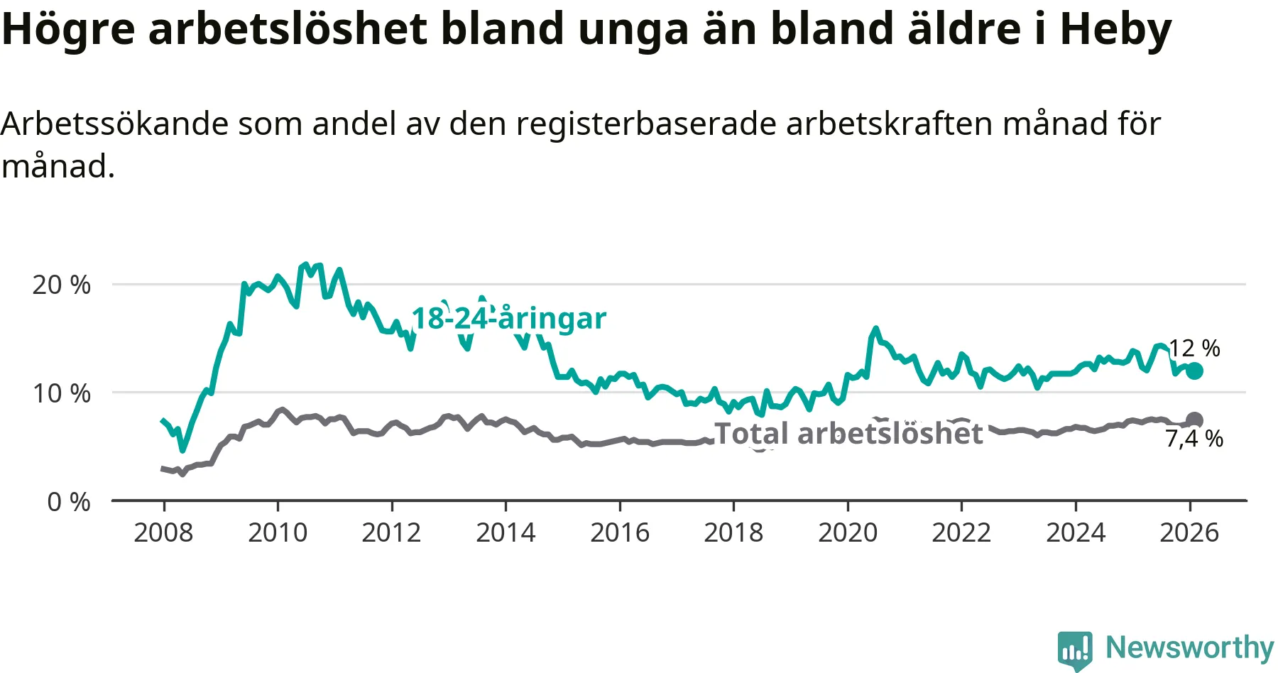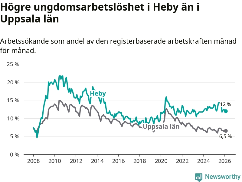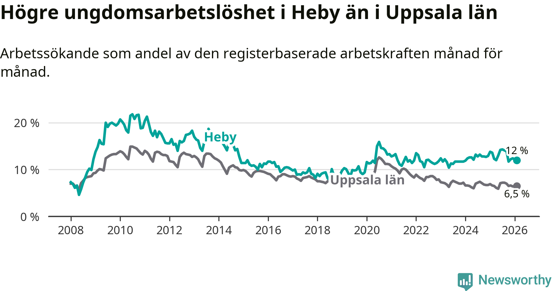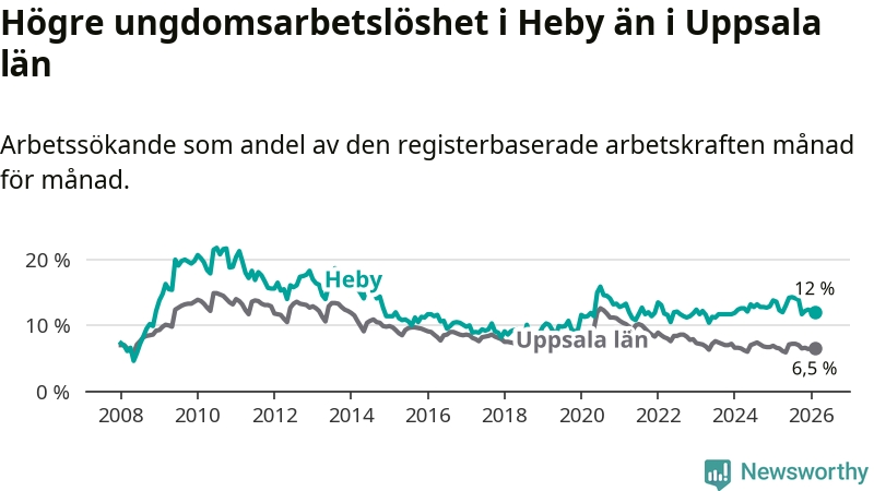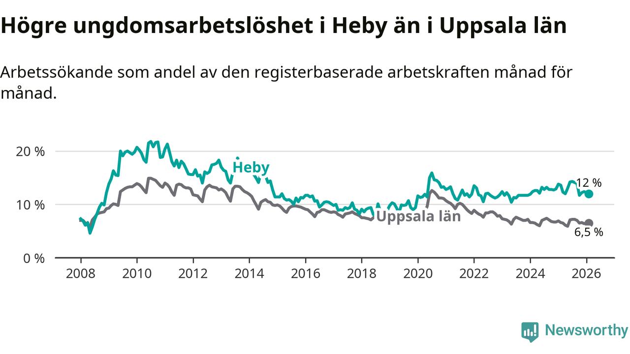 Graf: Arbetslöshet bland unga i Heby kommun och Uppsala län