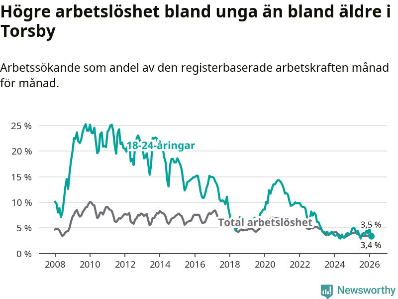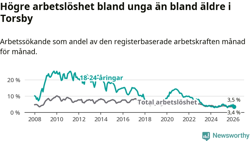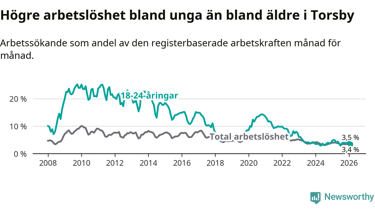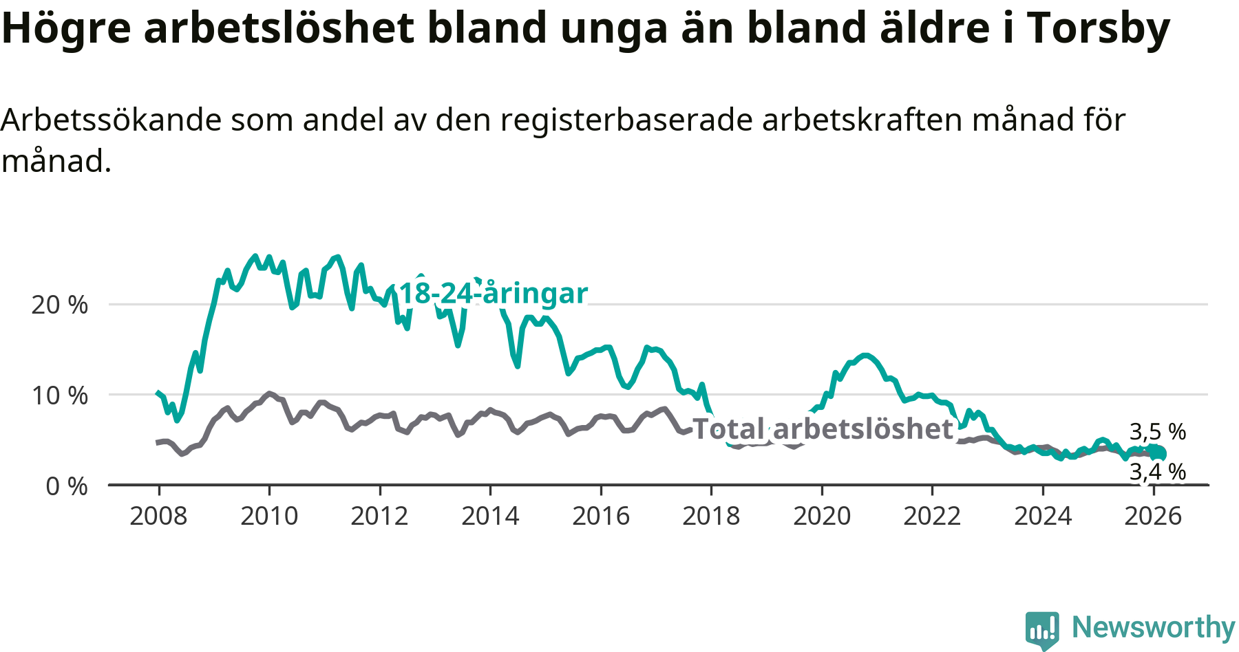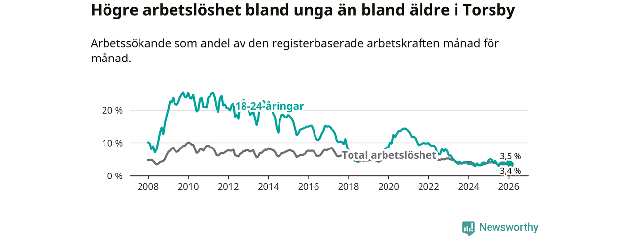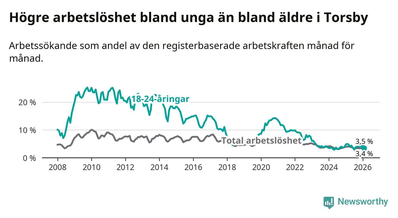 Graf: Arbetslöshet bland unga i Torsby kommun och Värmlands län