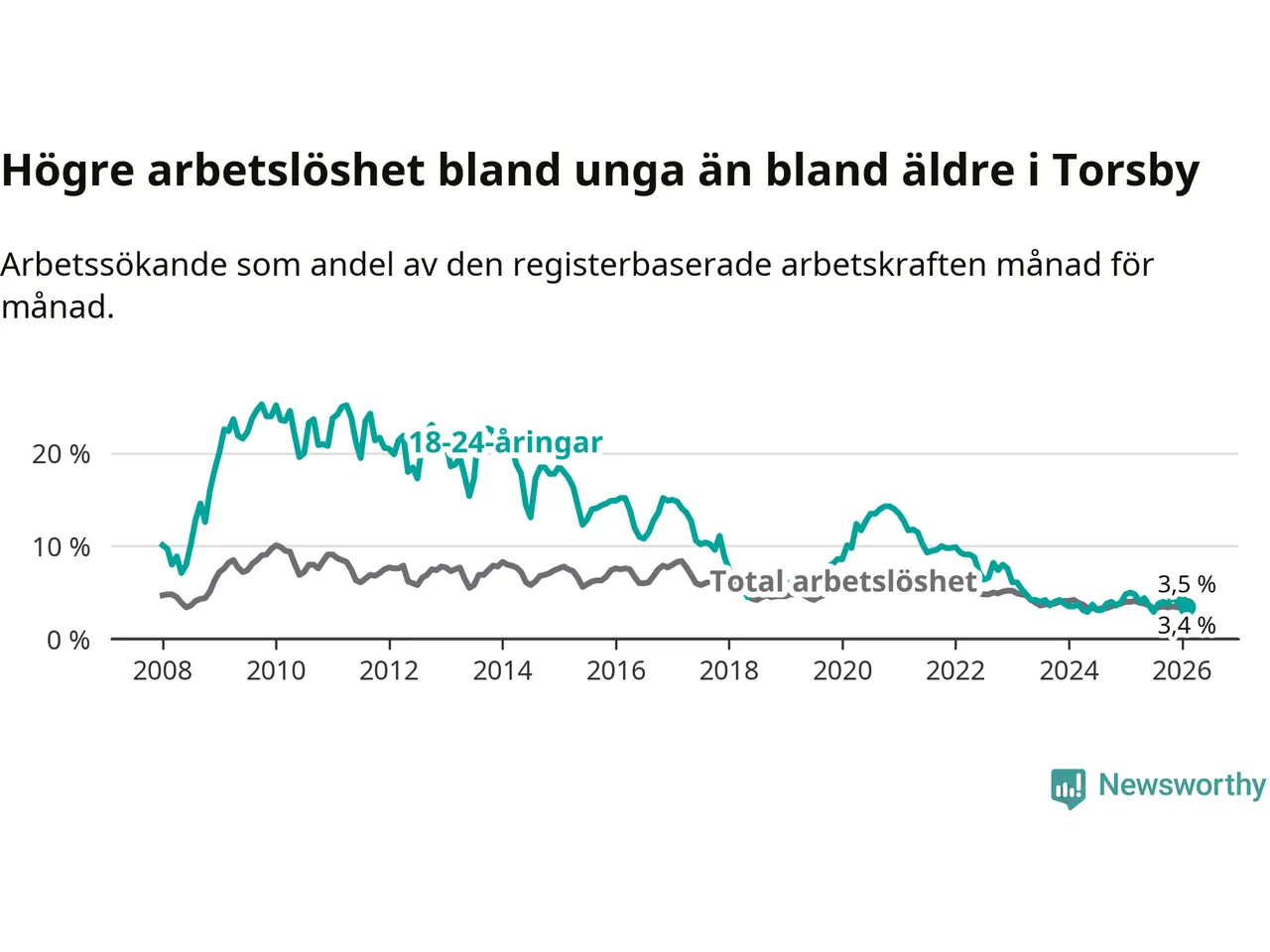 Under februari månad rapporterade Torsby kommun en total arbetslöshet på 3,5 procent. Det är en minskning jämfört med samma tidpunkt i fjol (−0,5 procentenheter). Även i Värmlands län sjunker arbetslösheten .