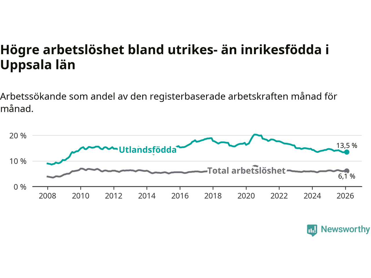 Läs mer om arbetslösheten bland utlandsfödda längre ner i den här texten.