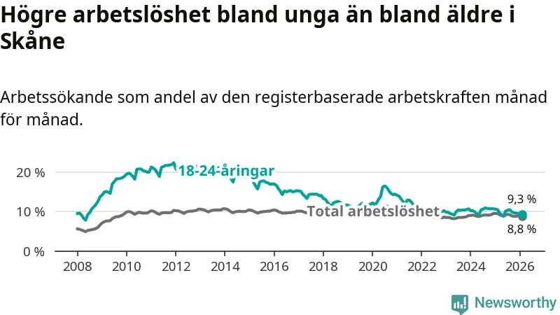 Arbetslöshet bland 18–24-åringar i Skåne län