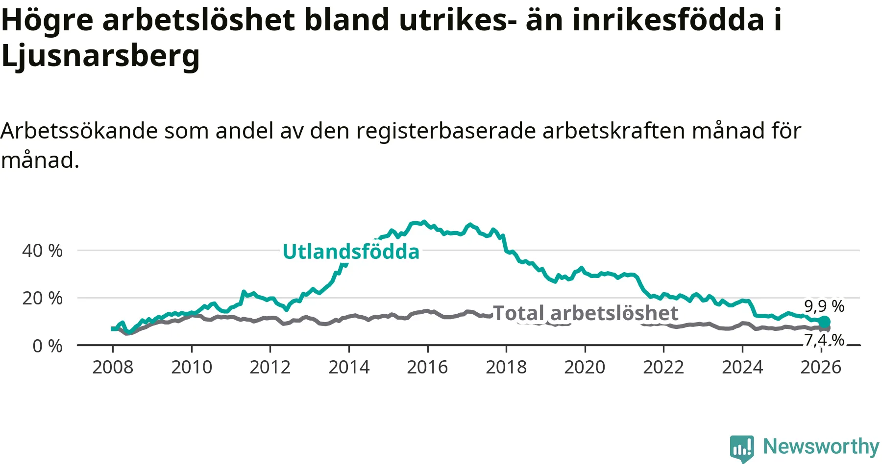 Läs mer om arbetslösheten bland utlandsfödda längre ner i den här texten.