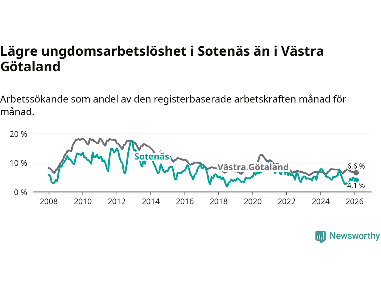 Graf: Arbetslöshet bland unga i Sotenäs kommun och Västra Götalands län