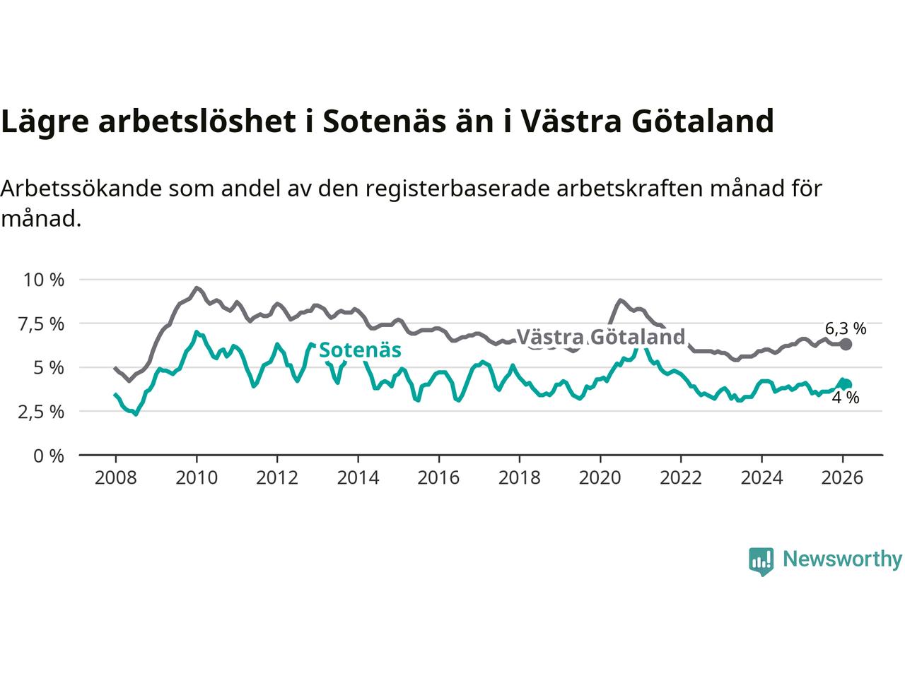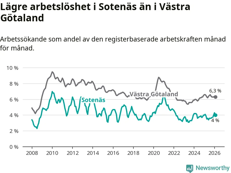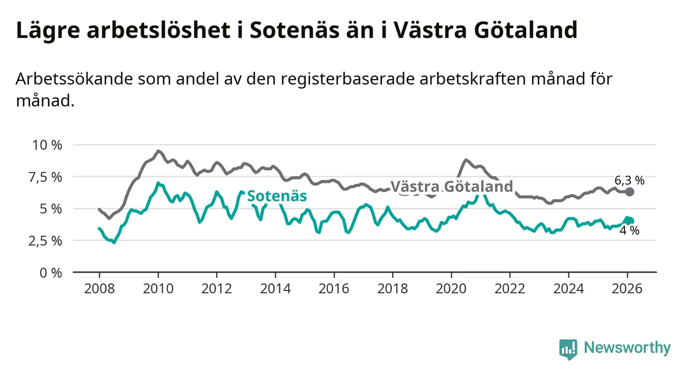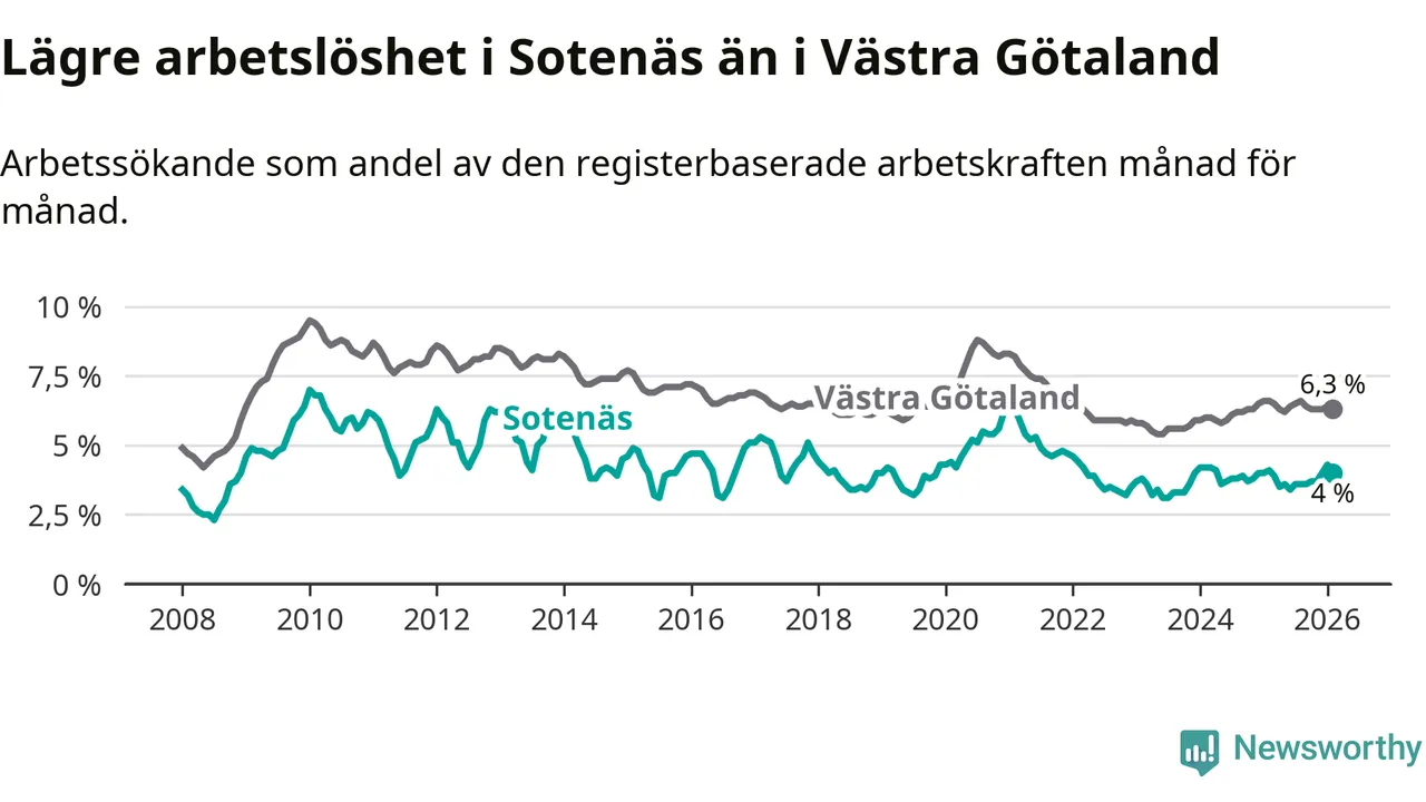Graf: Arbetslöshet i Sotenäs kommun och Västra Götalands län