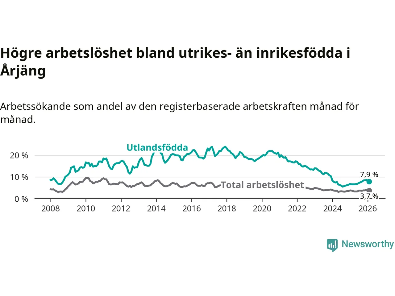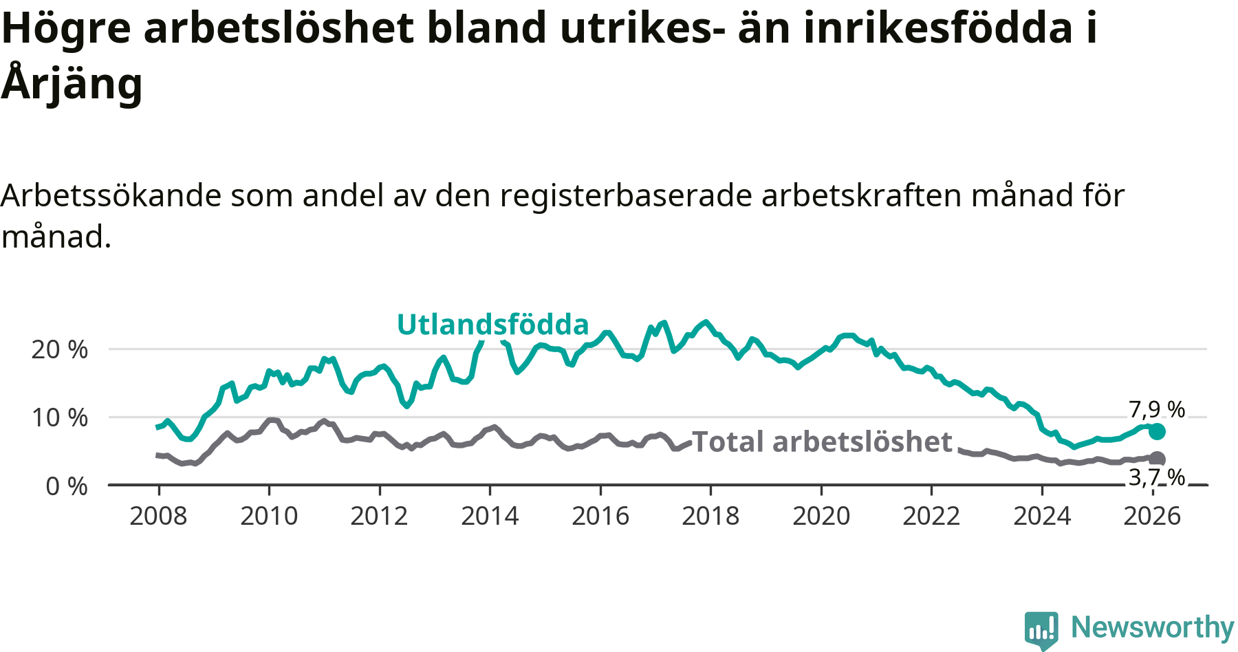 Läs mer om arbetslösheten bland utlandsfödda längre ner i den här texten.