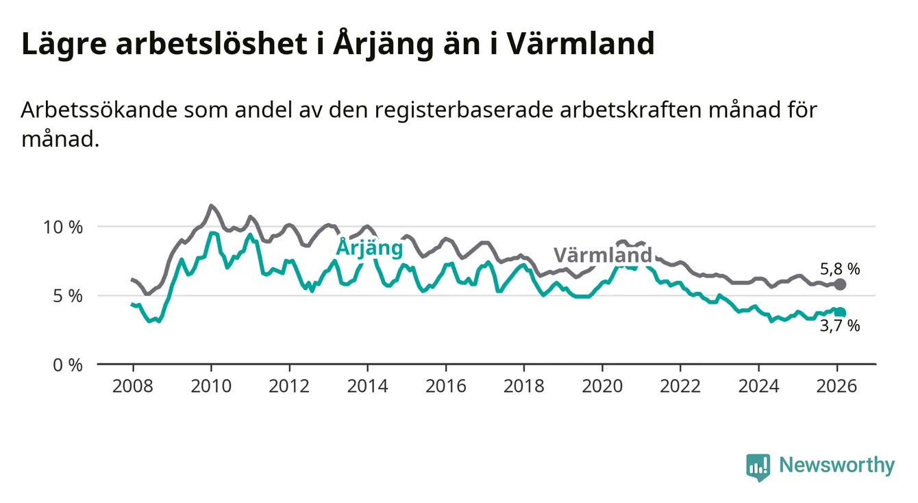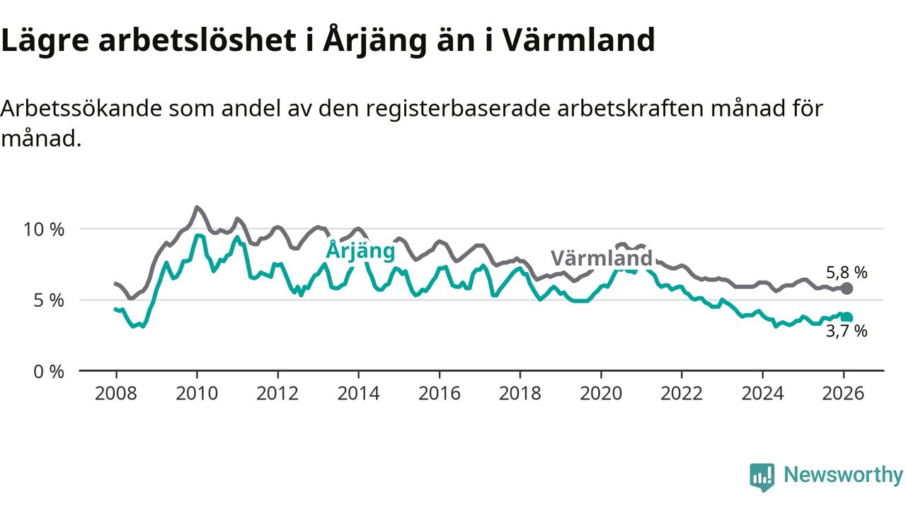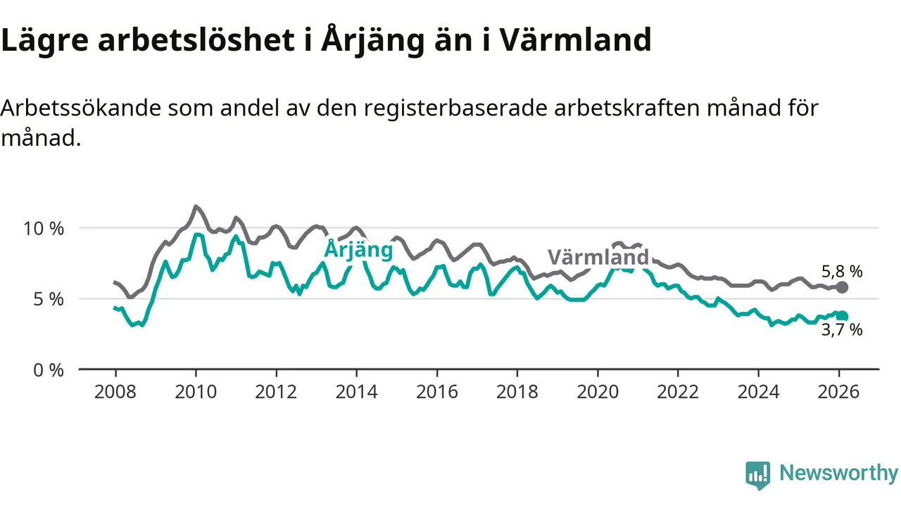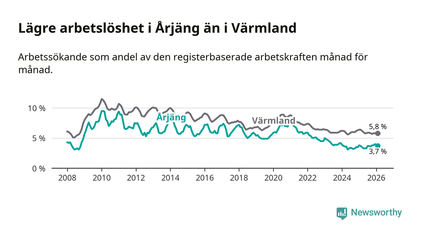 Graf: Arbetslöshet i Årjängs kommun och Värmlands län