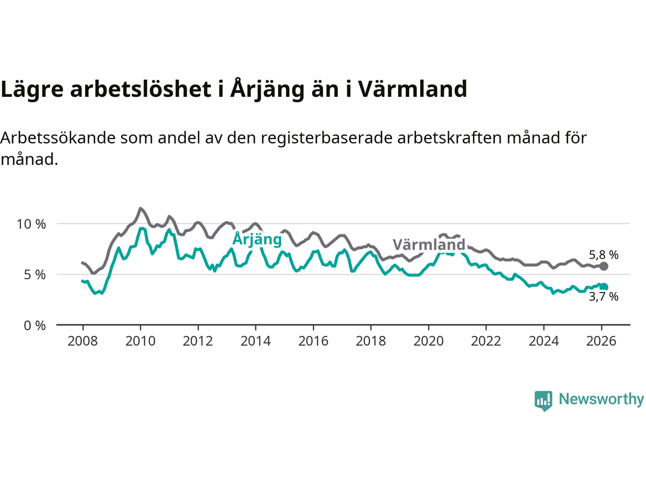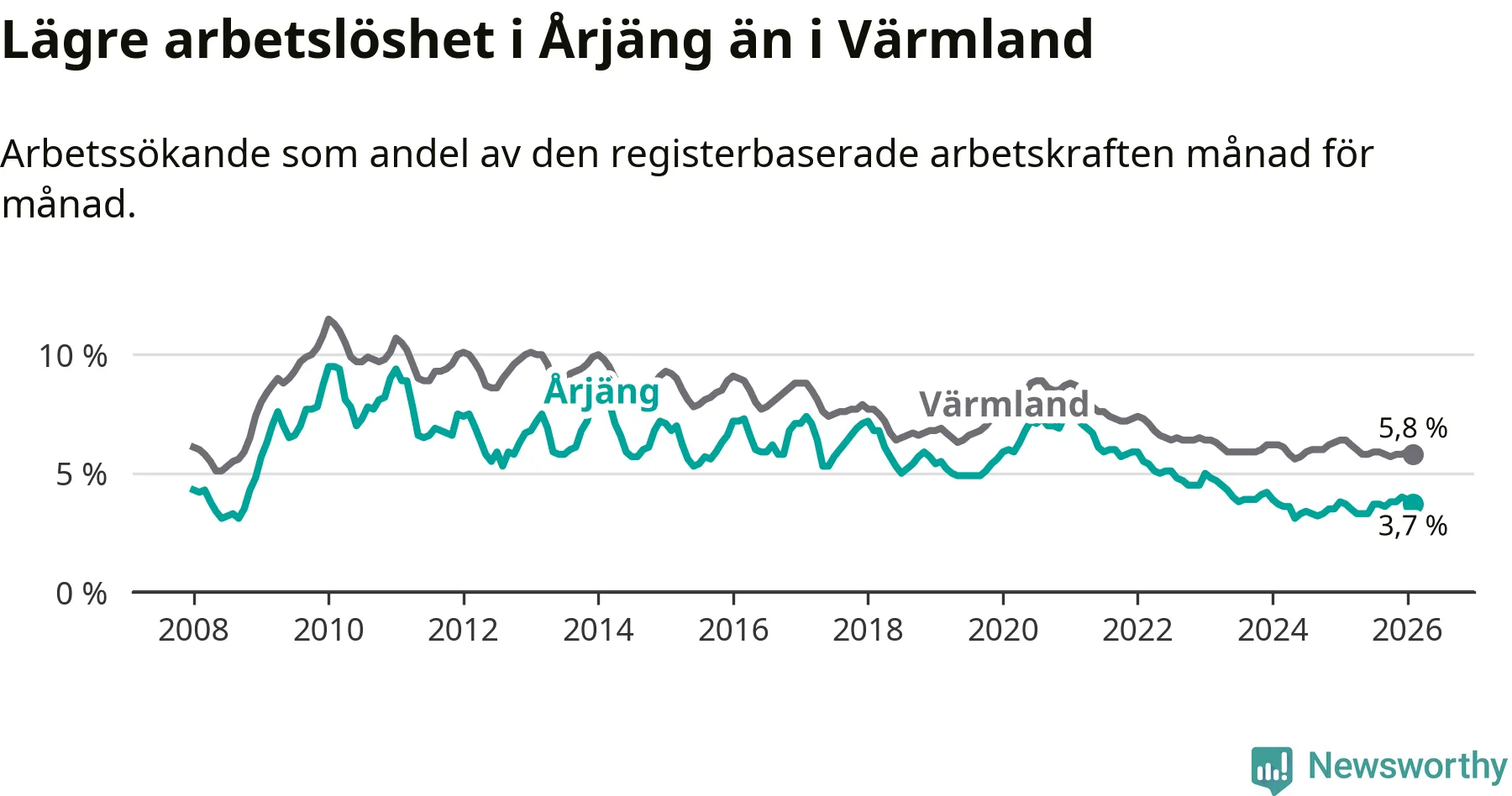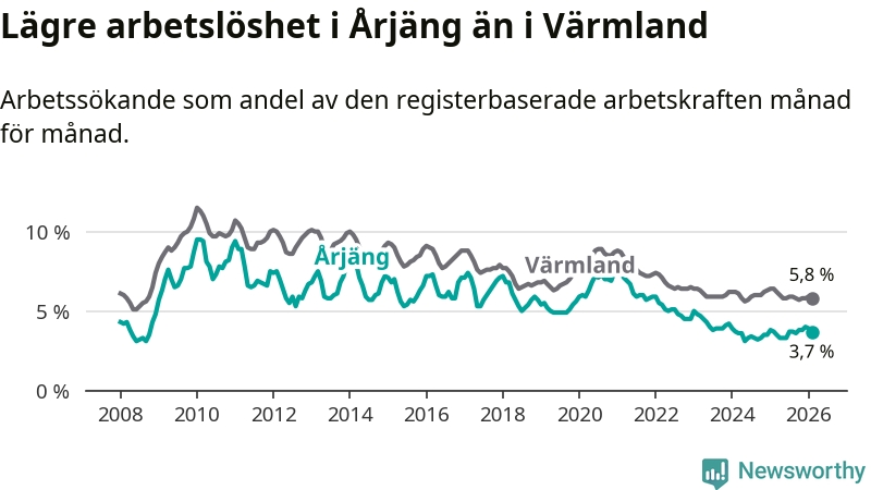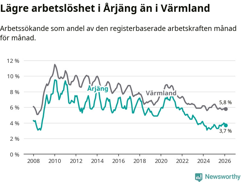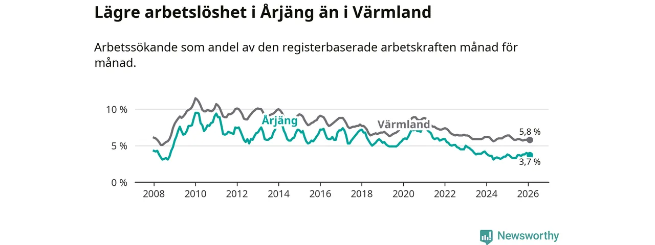 Graf: Arbetslöshet i Årjängs kommun och Värmlands län