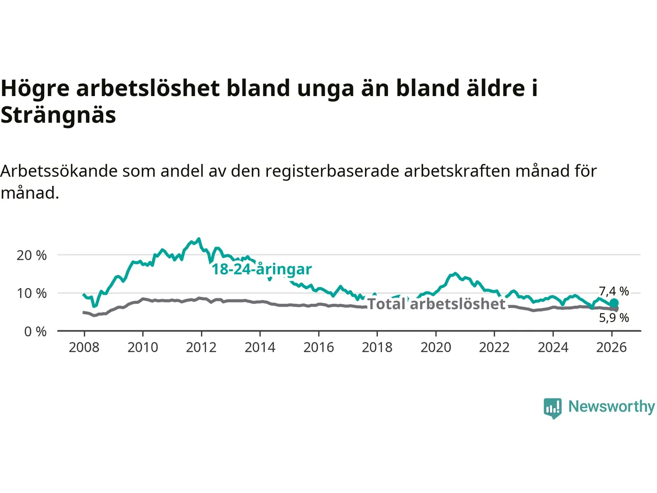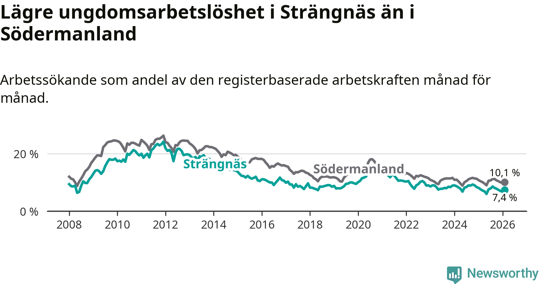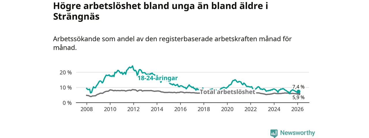 Graf: Arbetslöshet bland unga i Strängnäs kommun och Södermanlands län