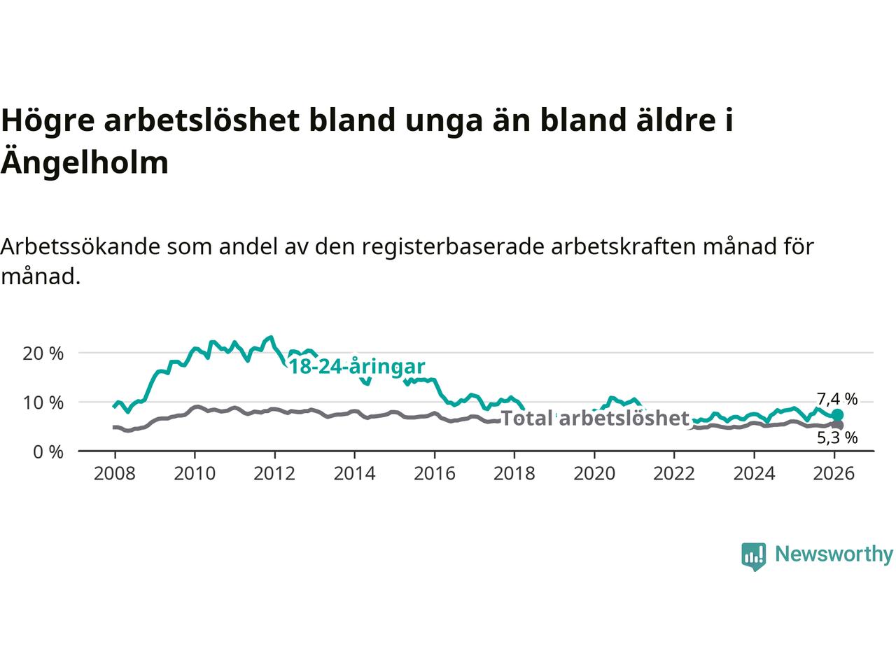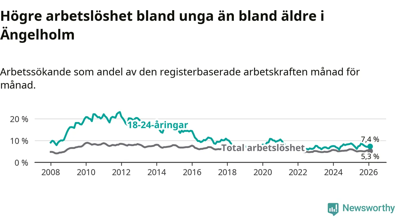 Graf: Arbetslöshet bland unga i Ängelholms kommun och Skåne län