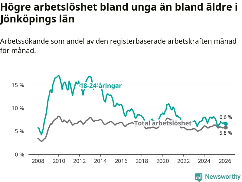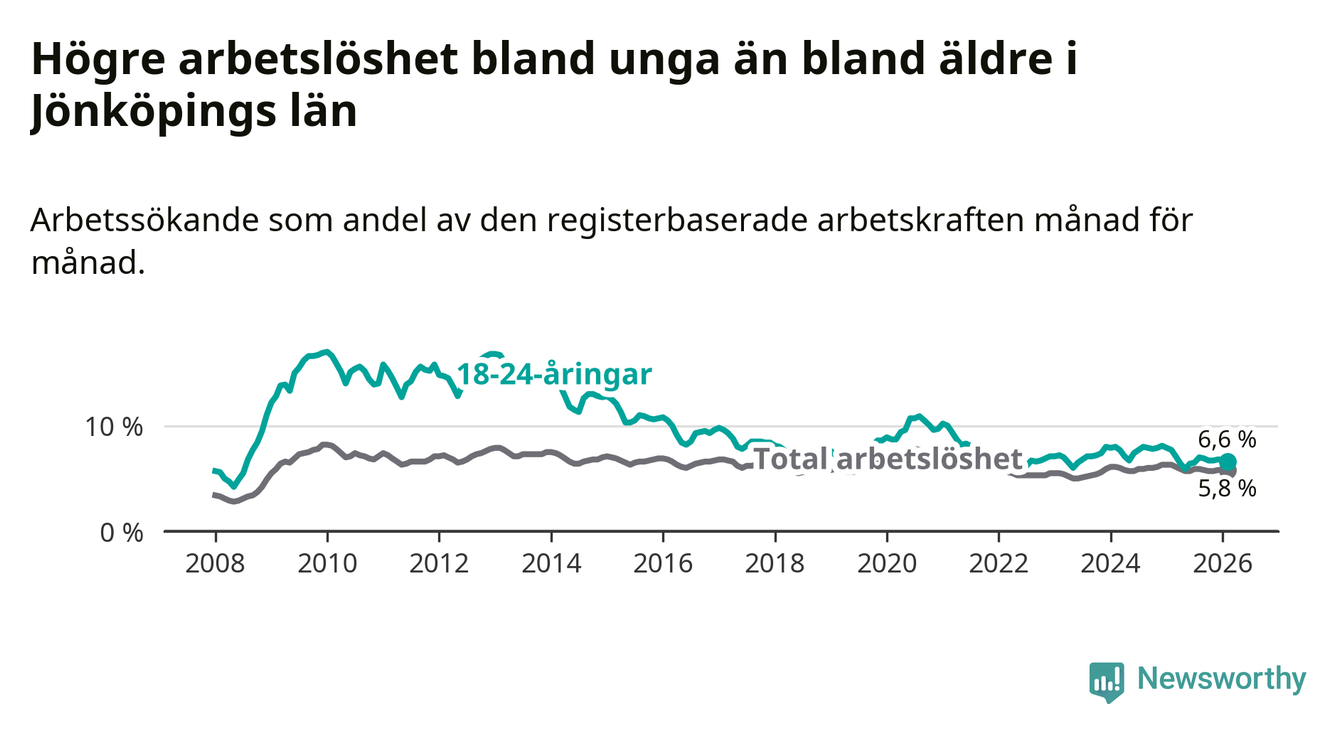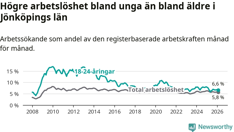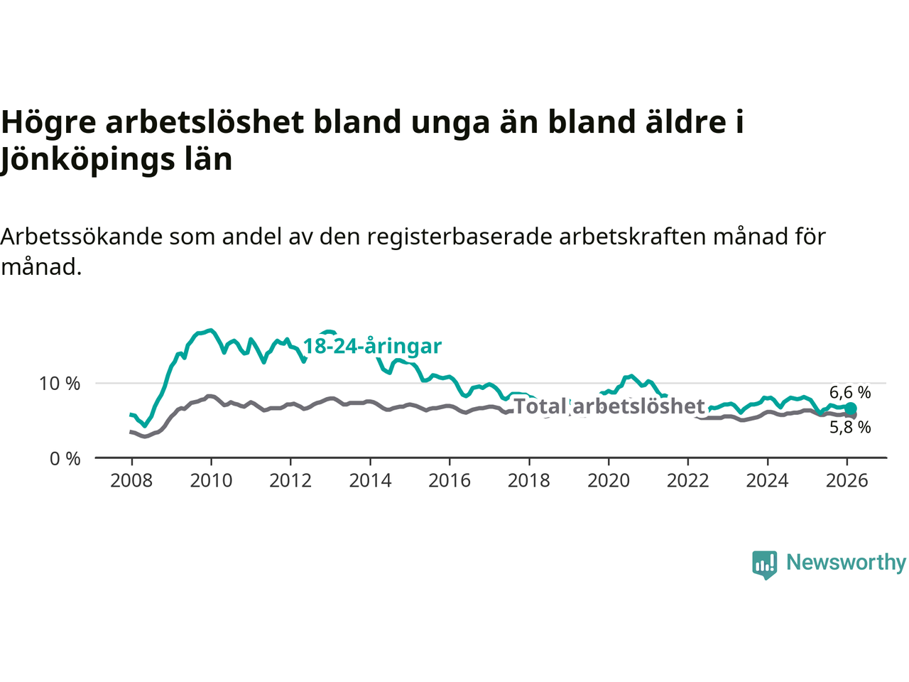 Arbetslöshet bland 18–24-åringar i Jönköpings län