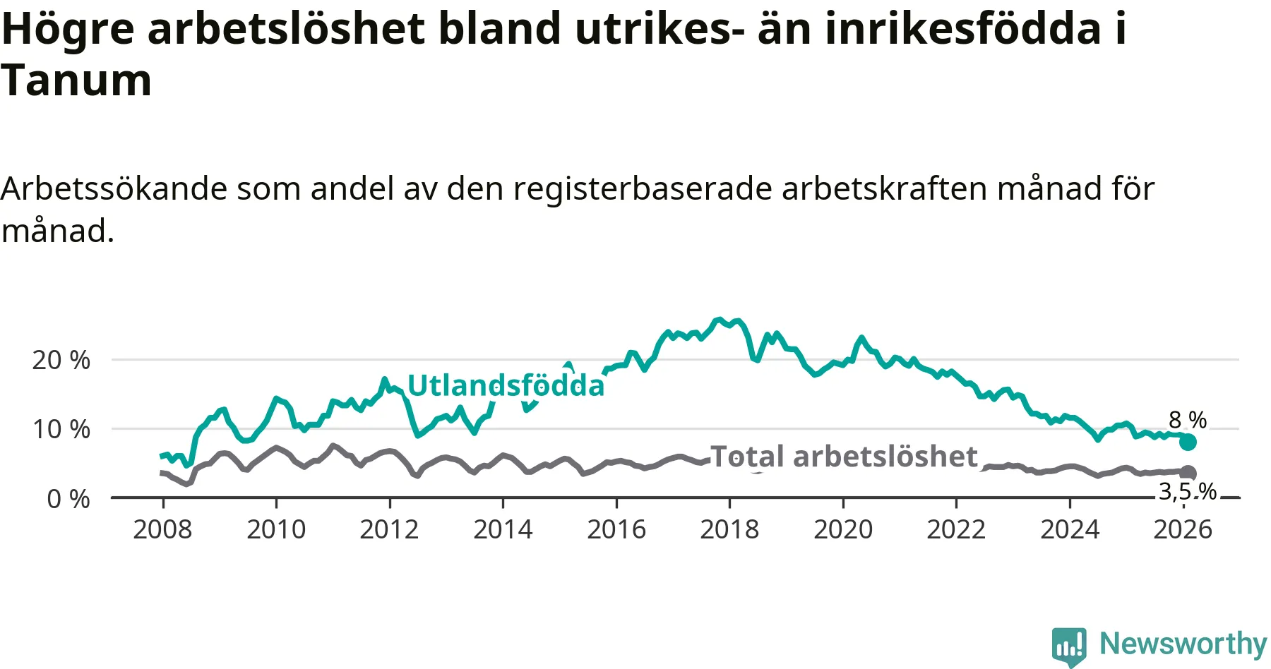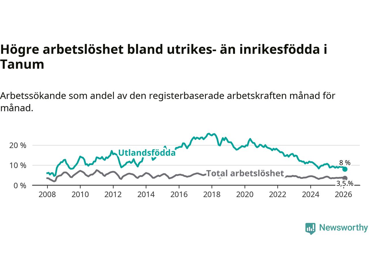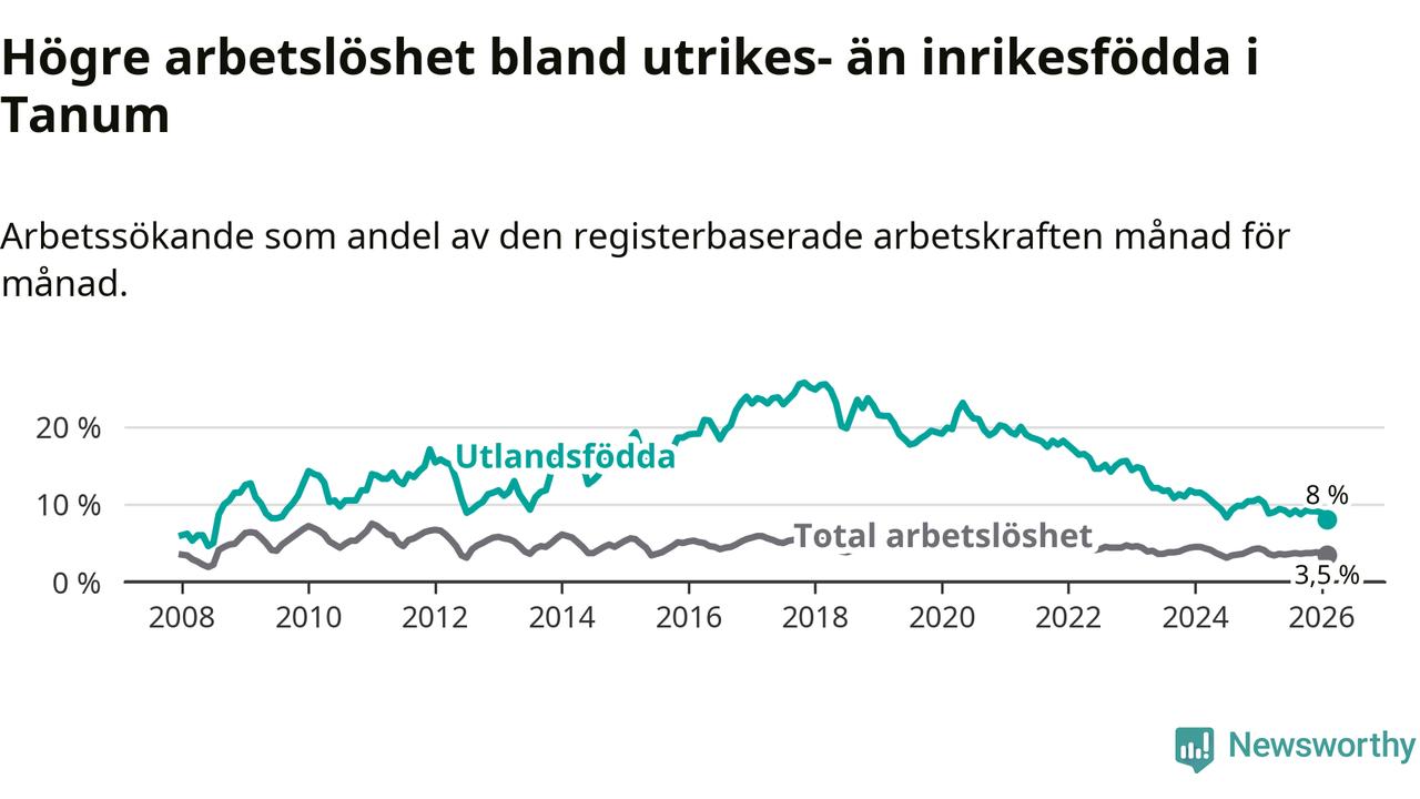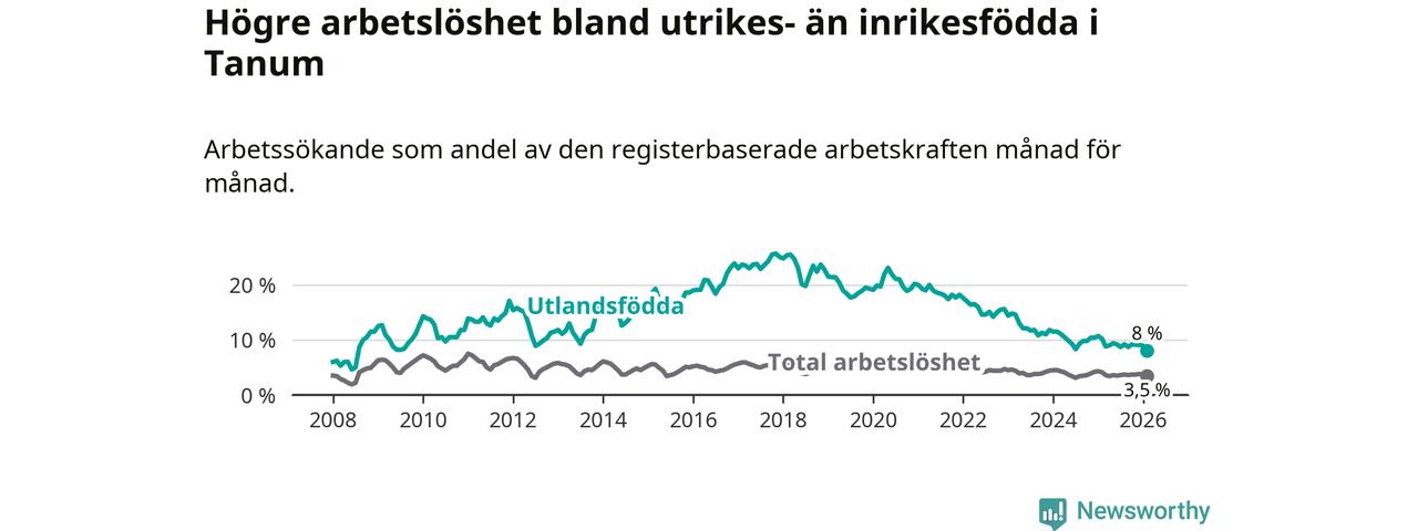 Läs mer om arbetslösheten bland utlandsfödda längre ner i den här texten.