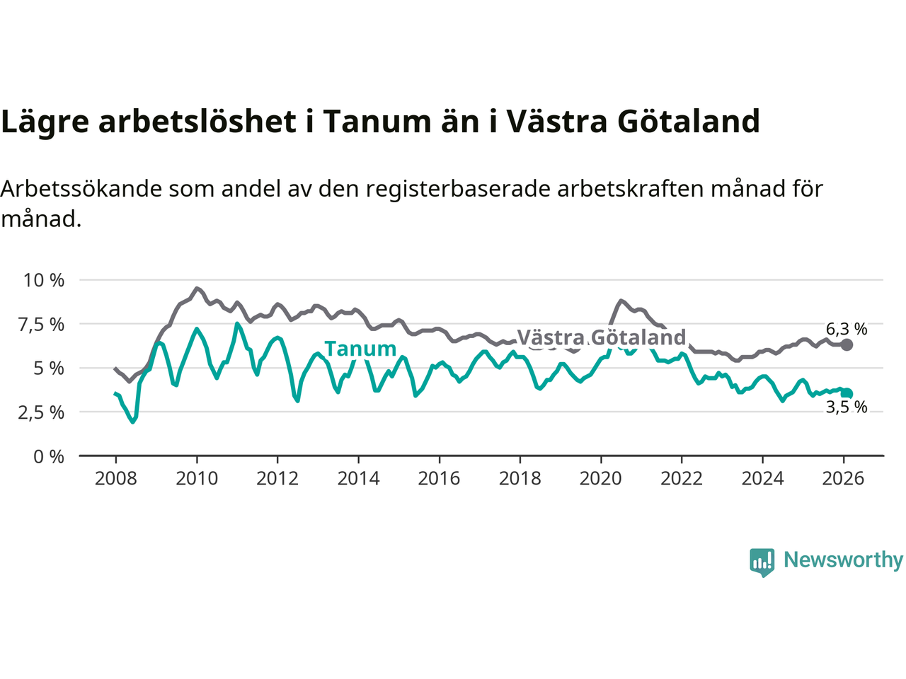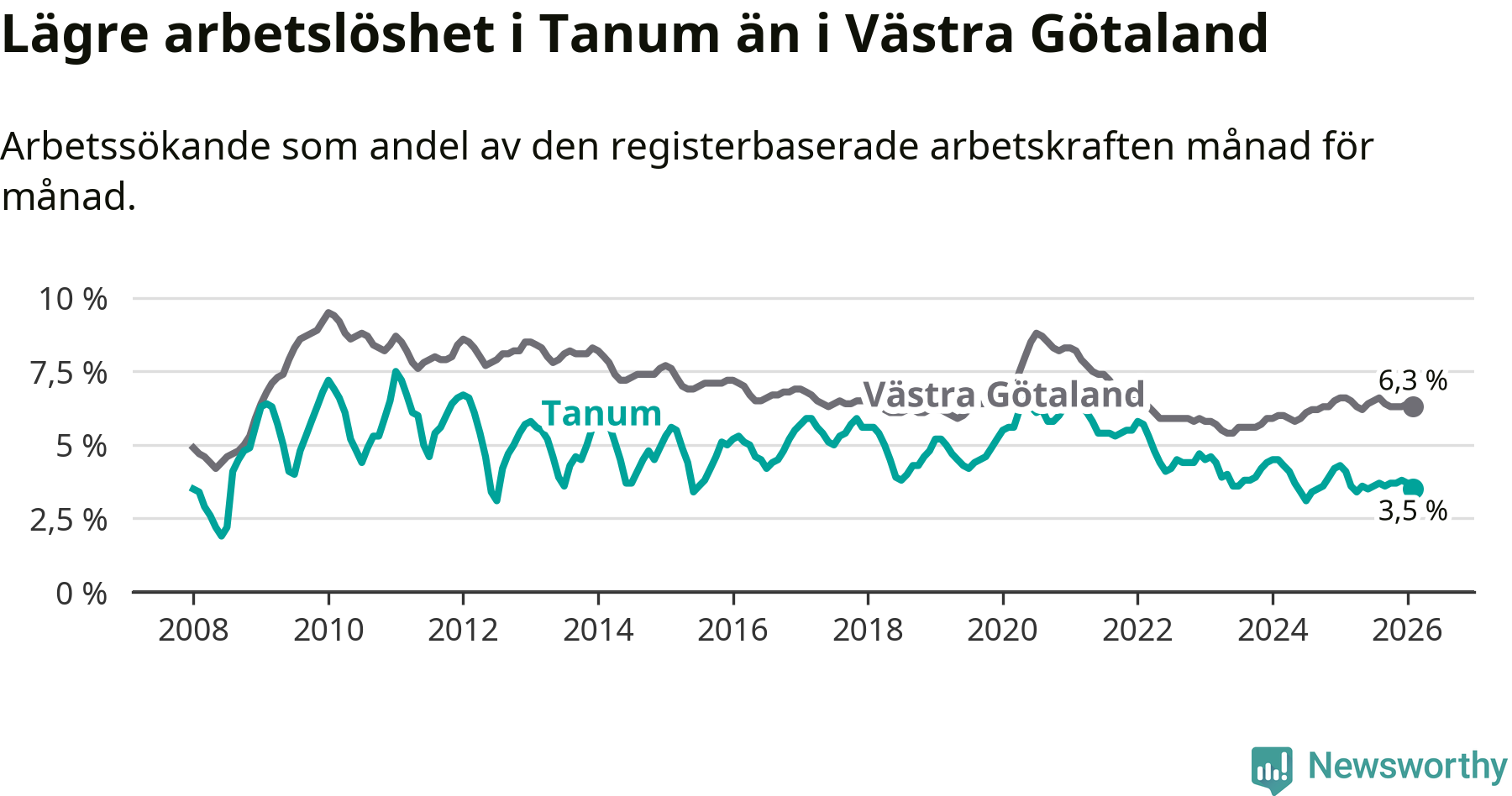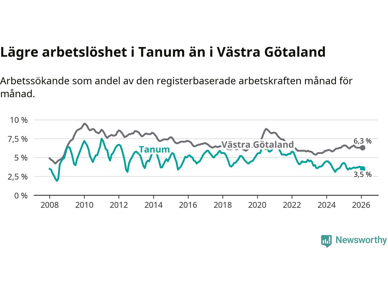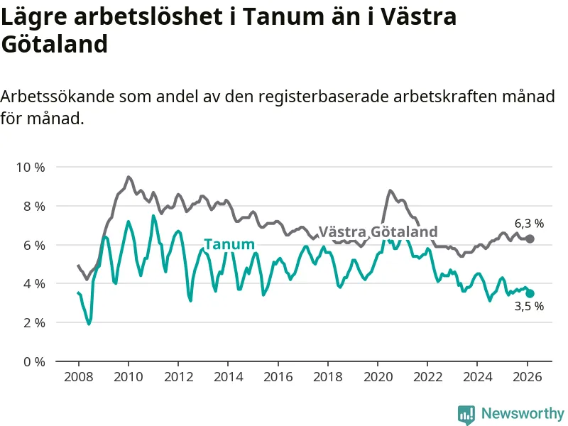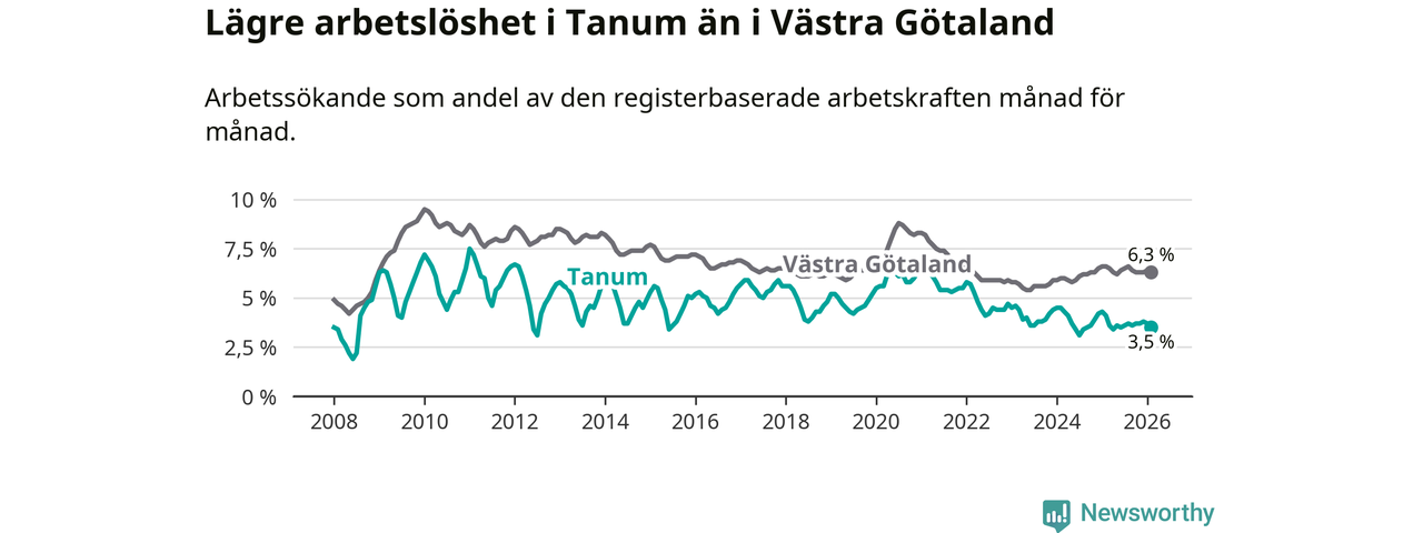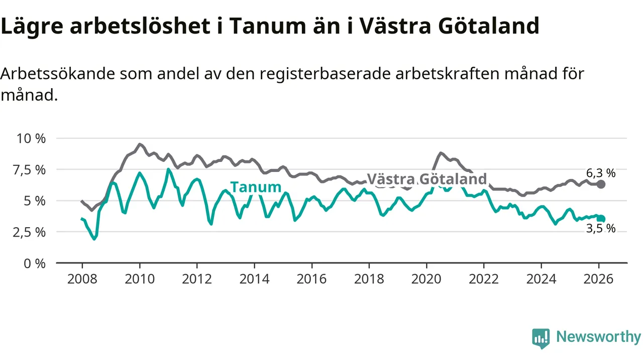 Graf: Arbetslöshet i Tanums kommun och Västra Götalands län