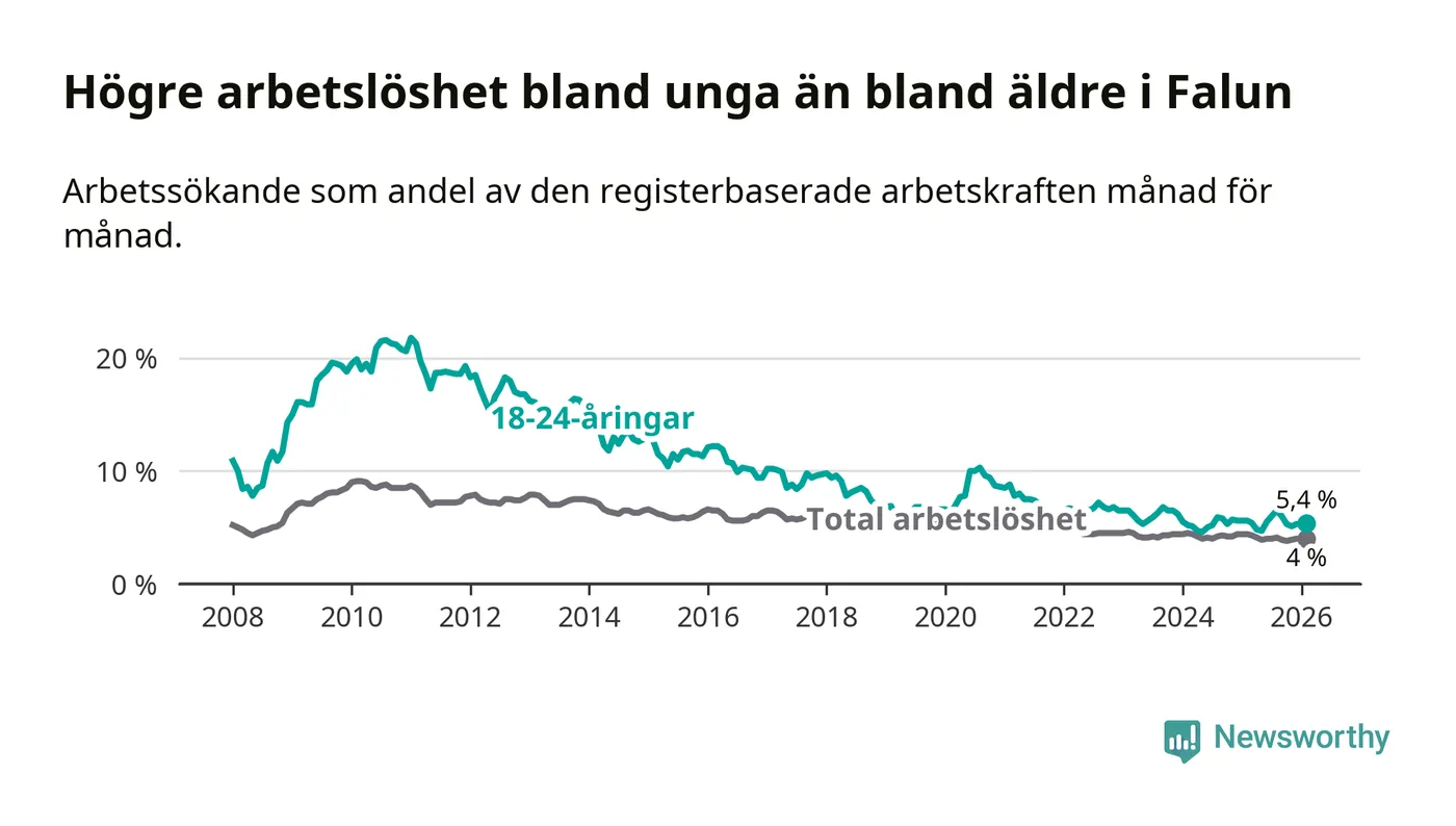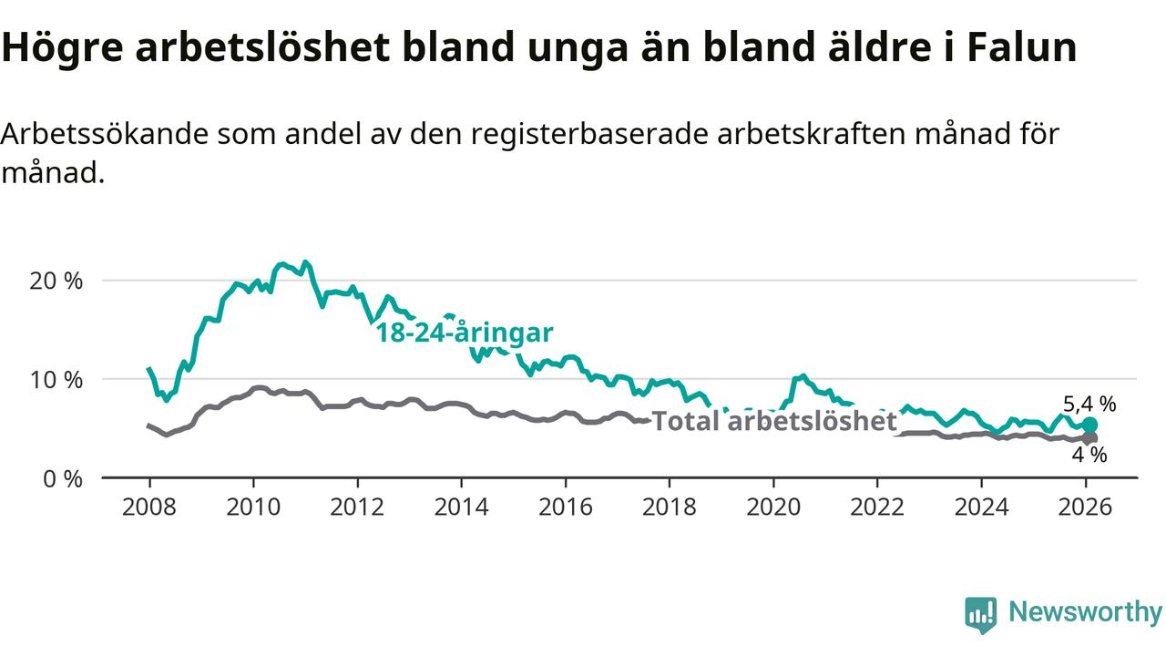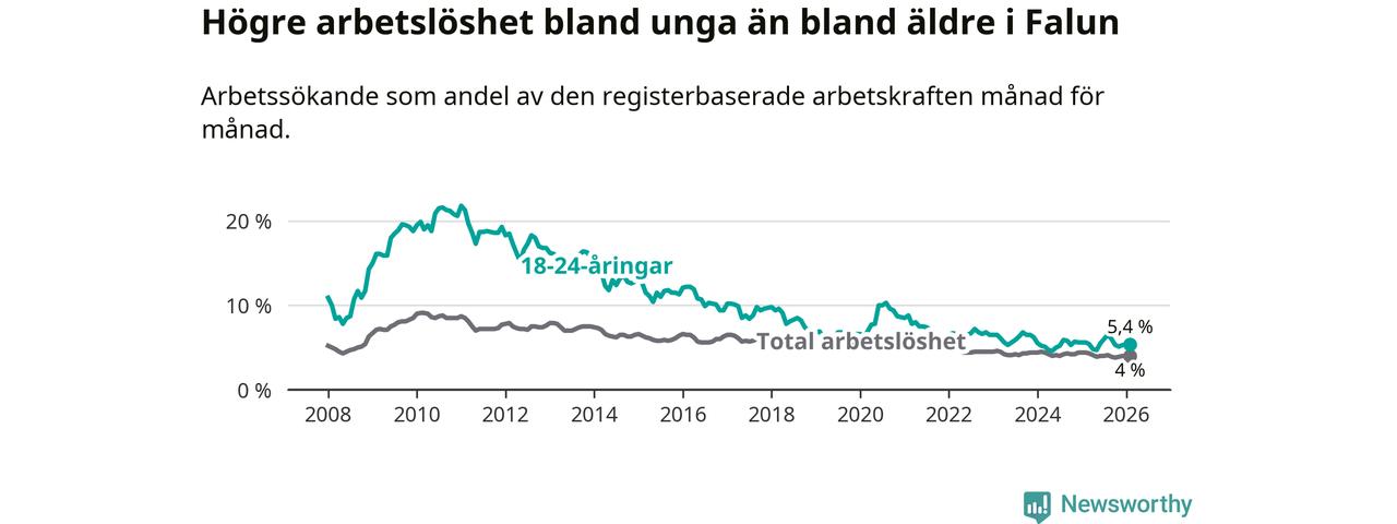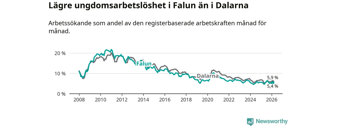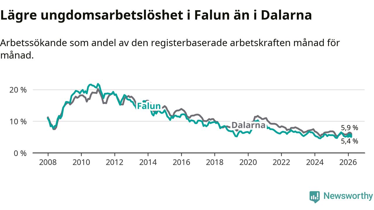 Graf: Arbetslöshet bland unga i Falu kommun och Dalarnas län
