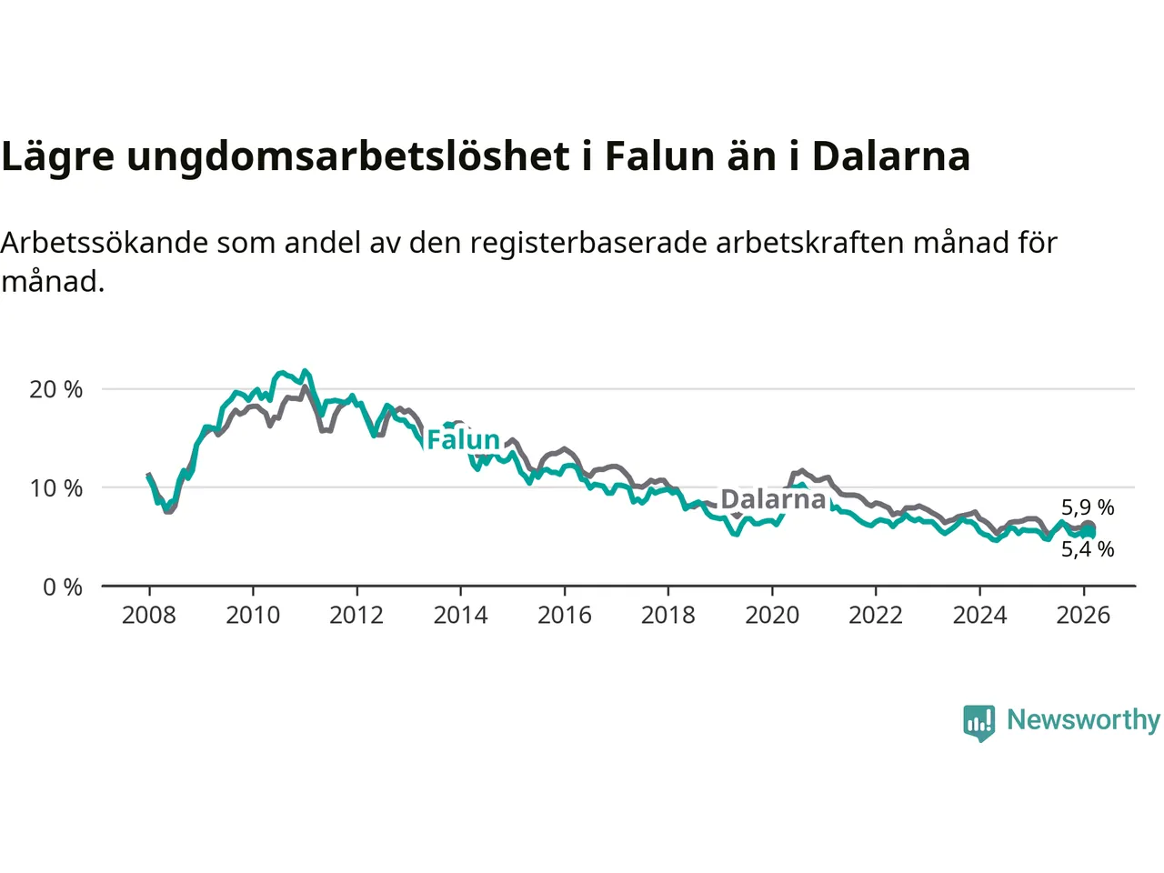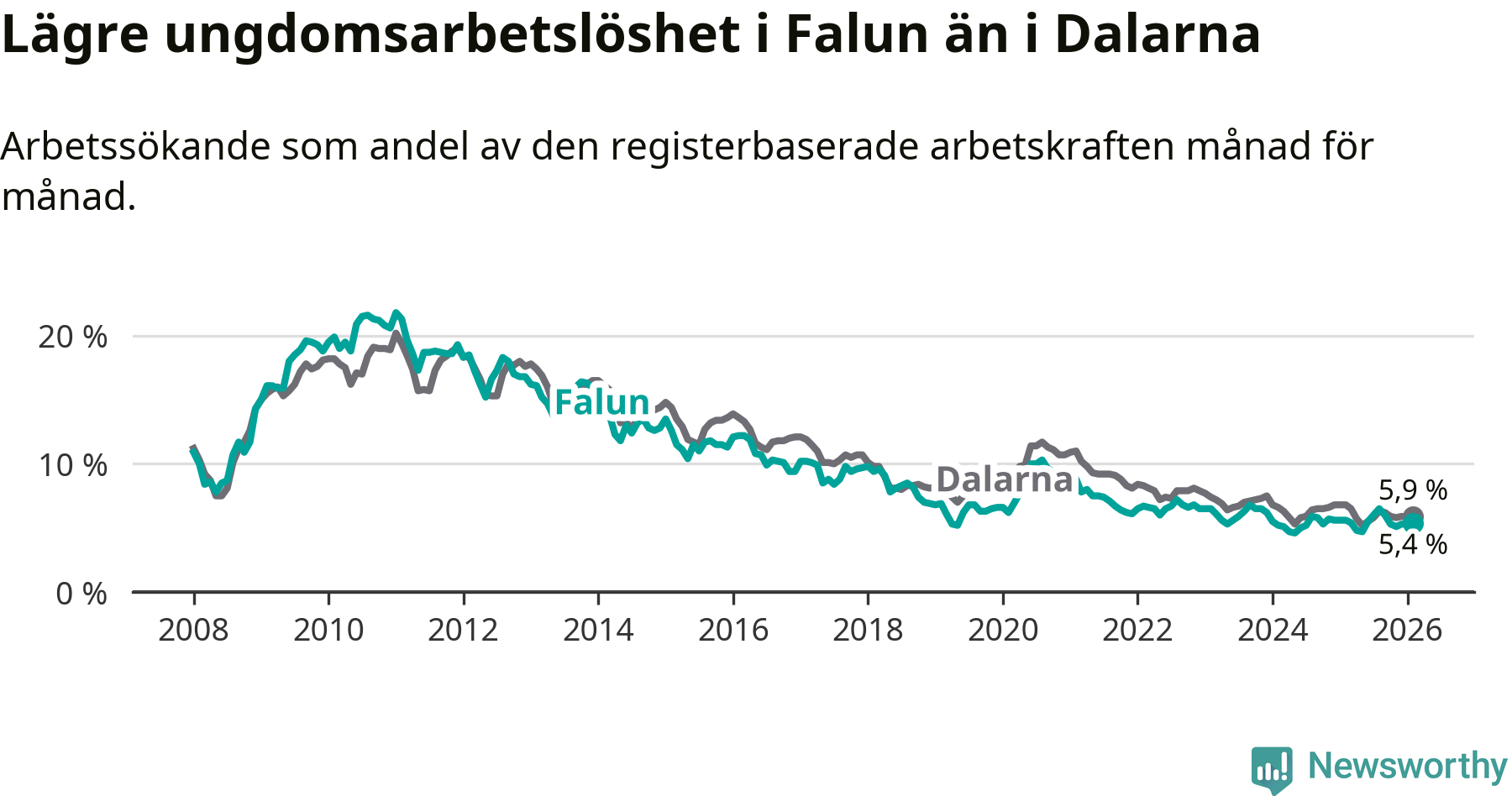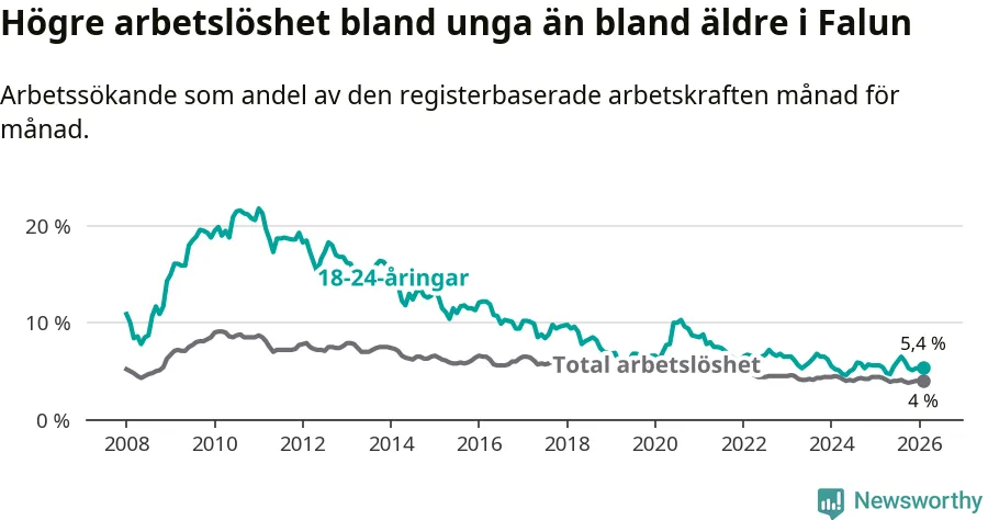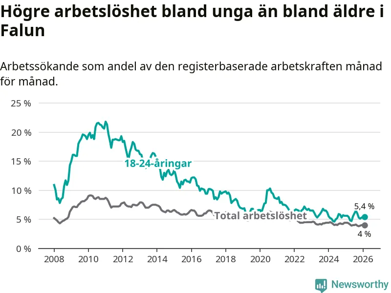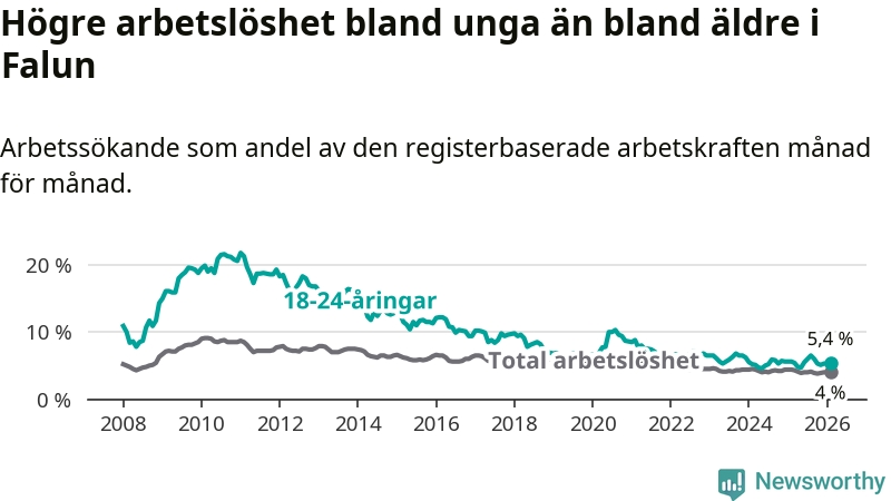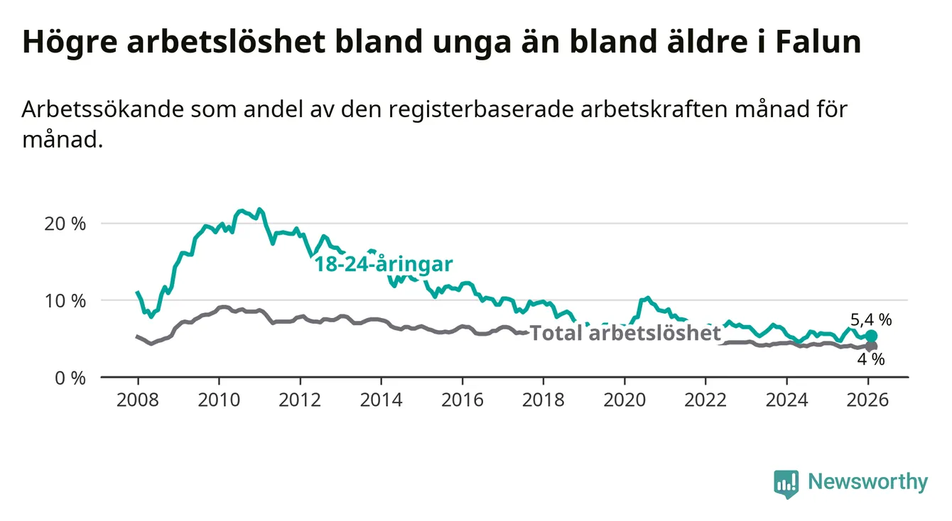 Graf: Arbetslöshet bland unga i Falu kommun och Dalarnas län