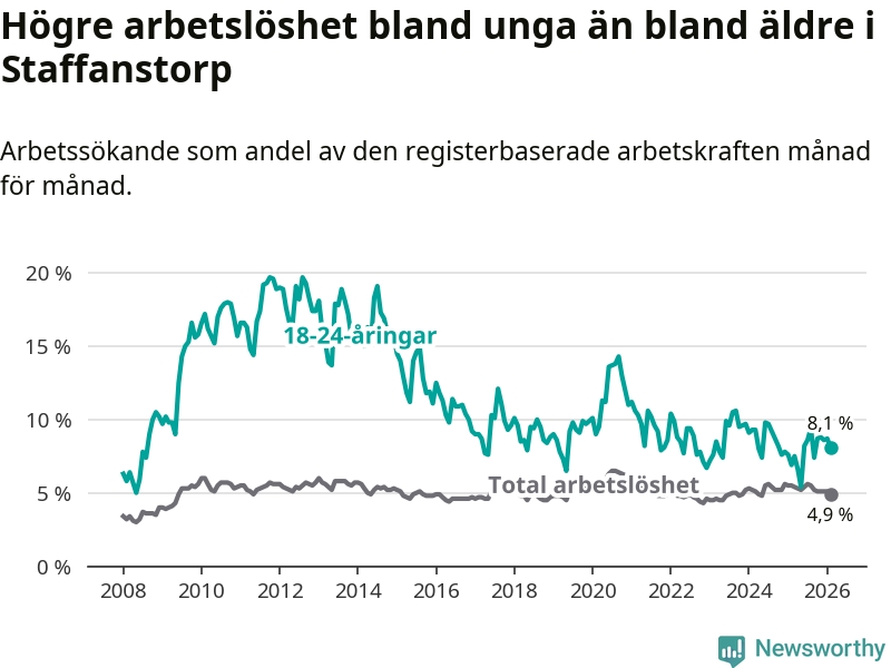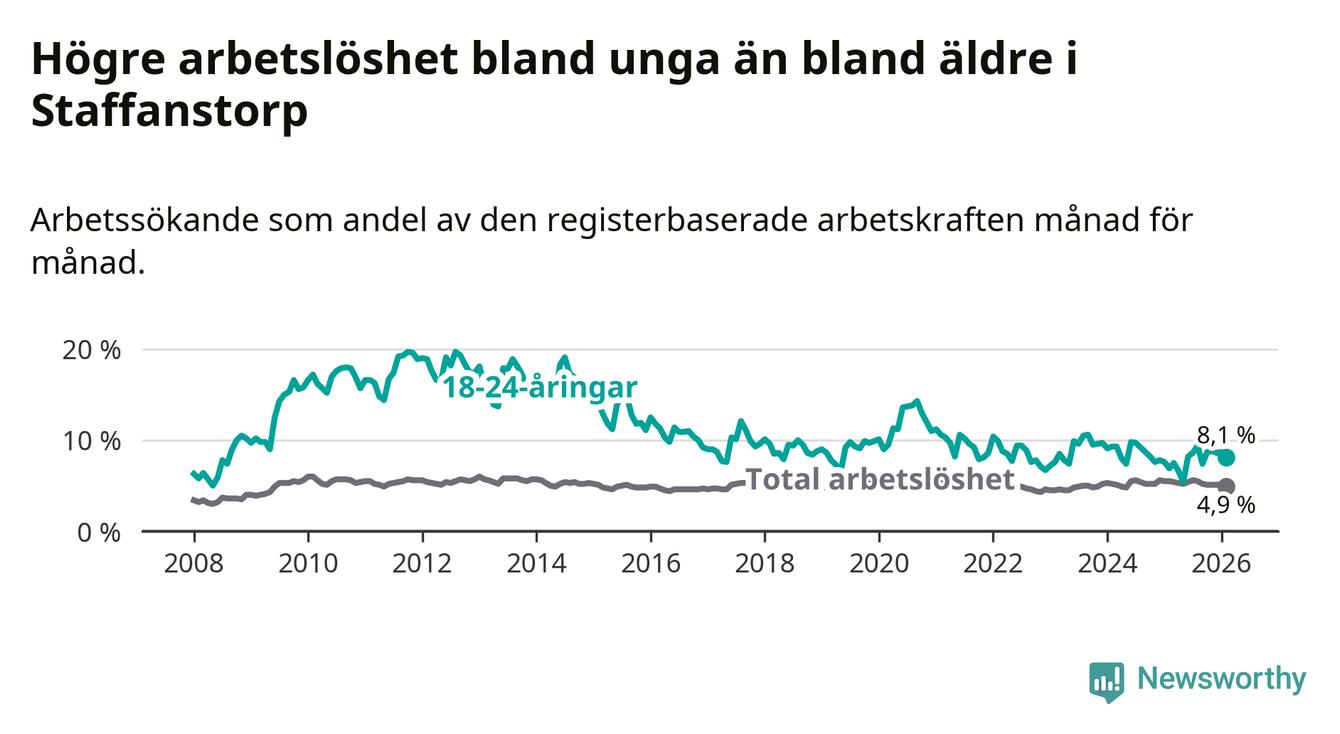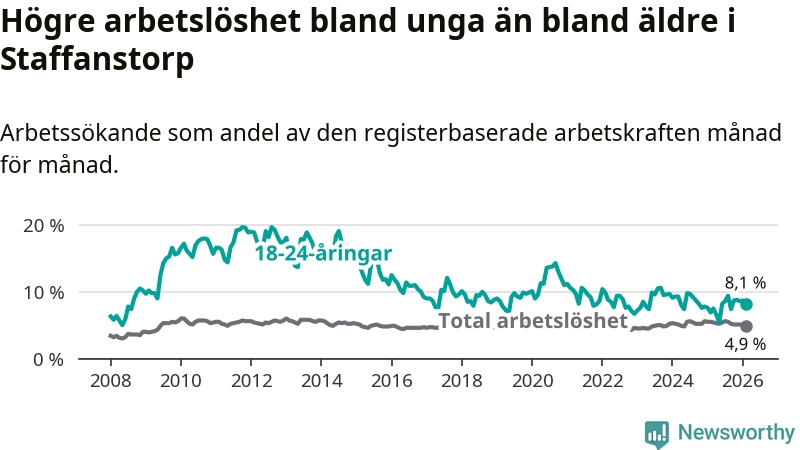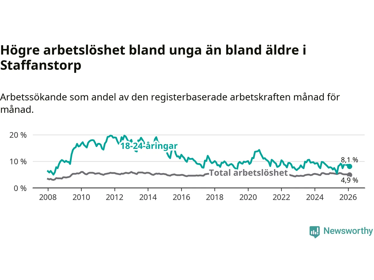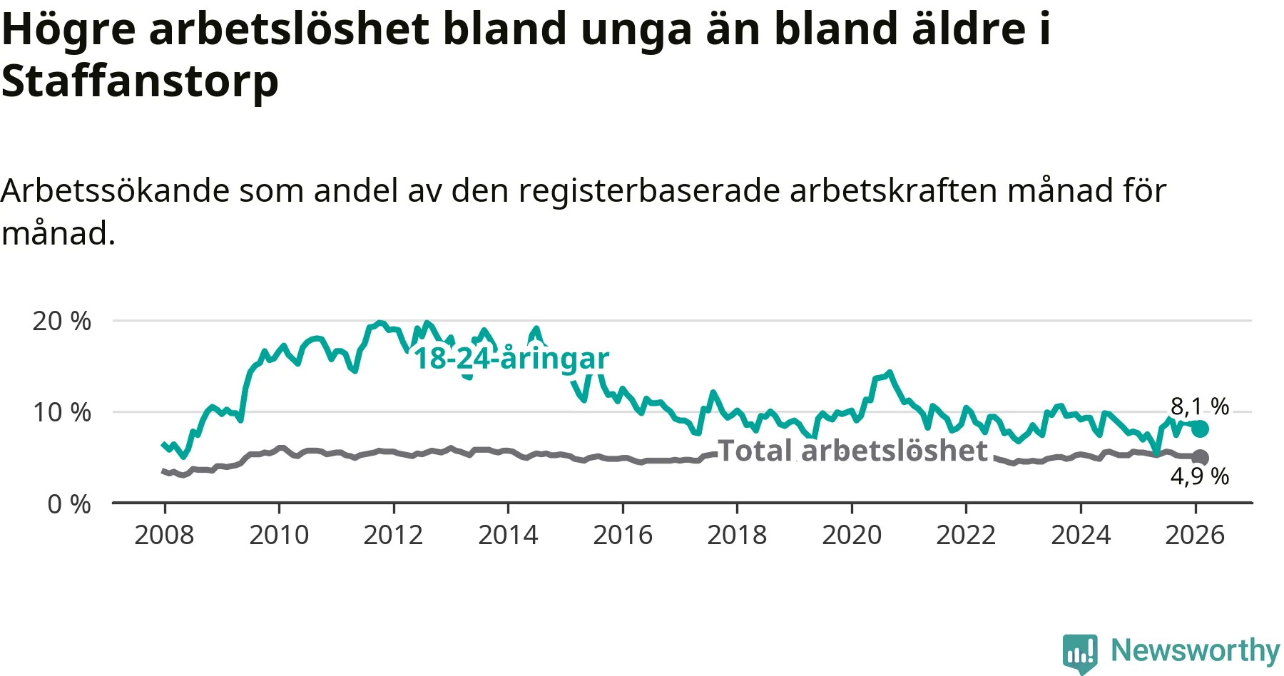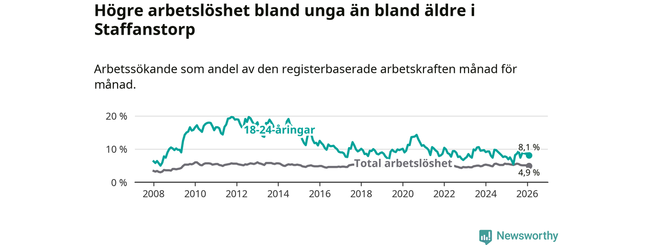 Graf: Arbetslöshet bland unga i Staffanstorps kommun och Skåne län
