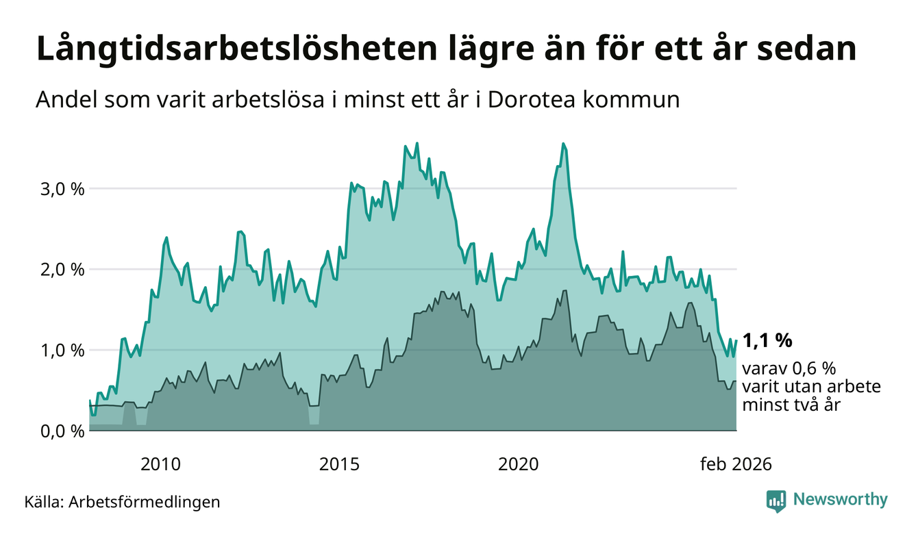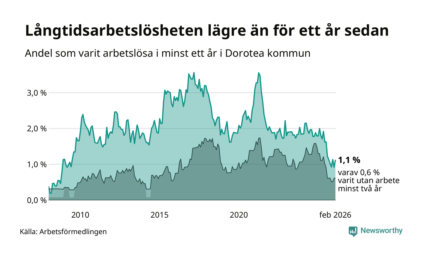 Långtidsarbetslöshet i Dorotea i februari 2026