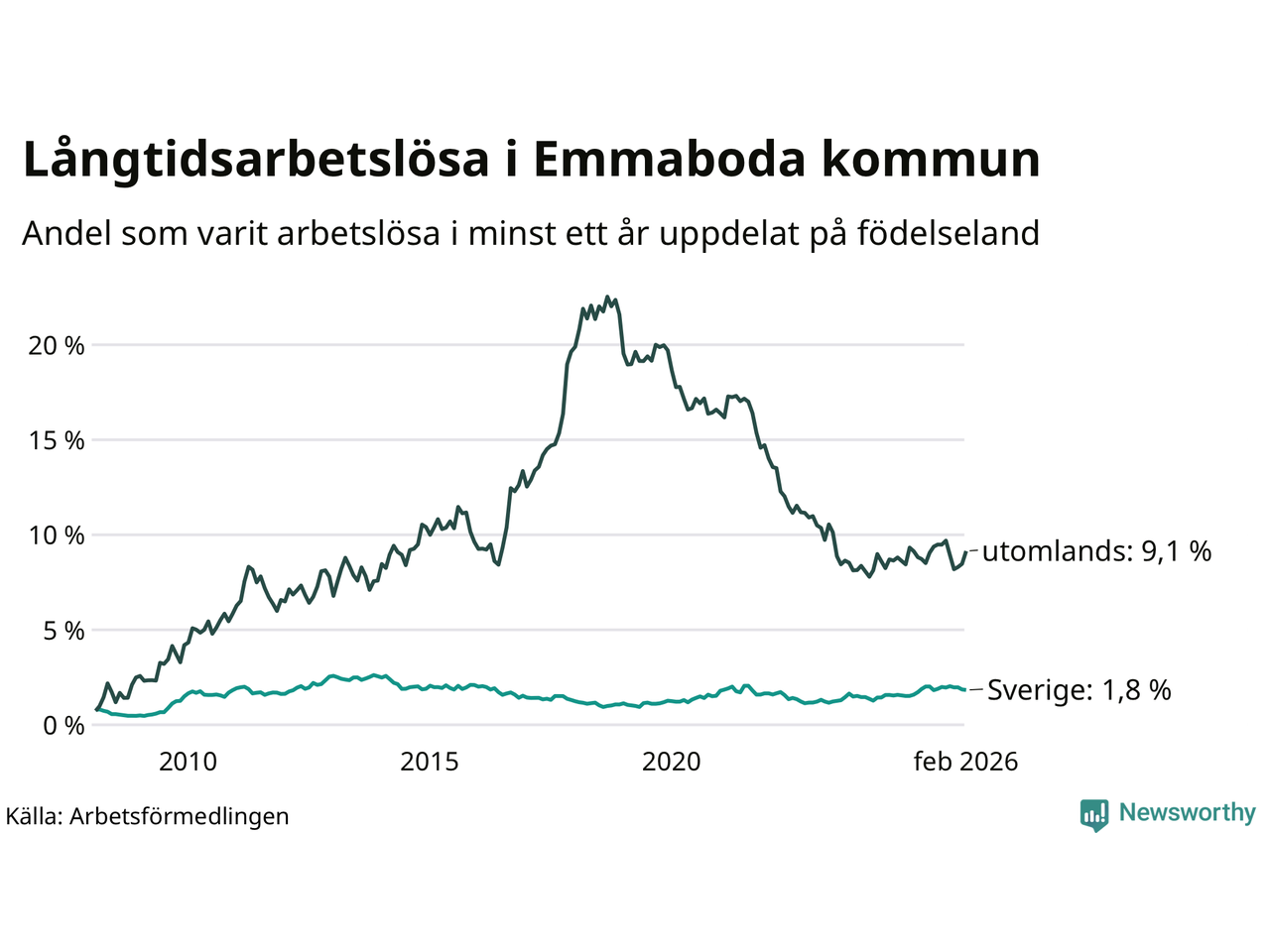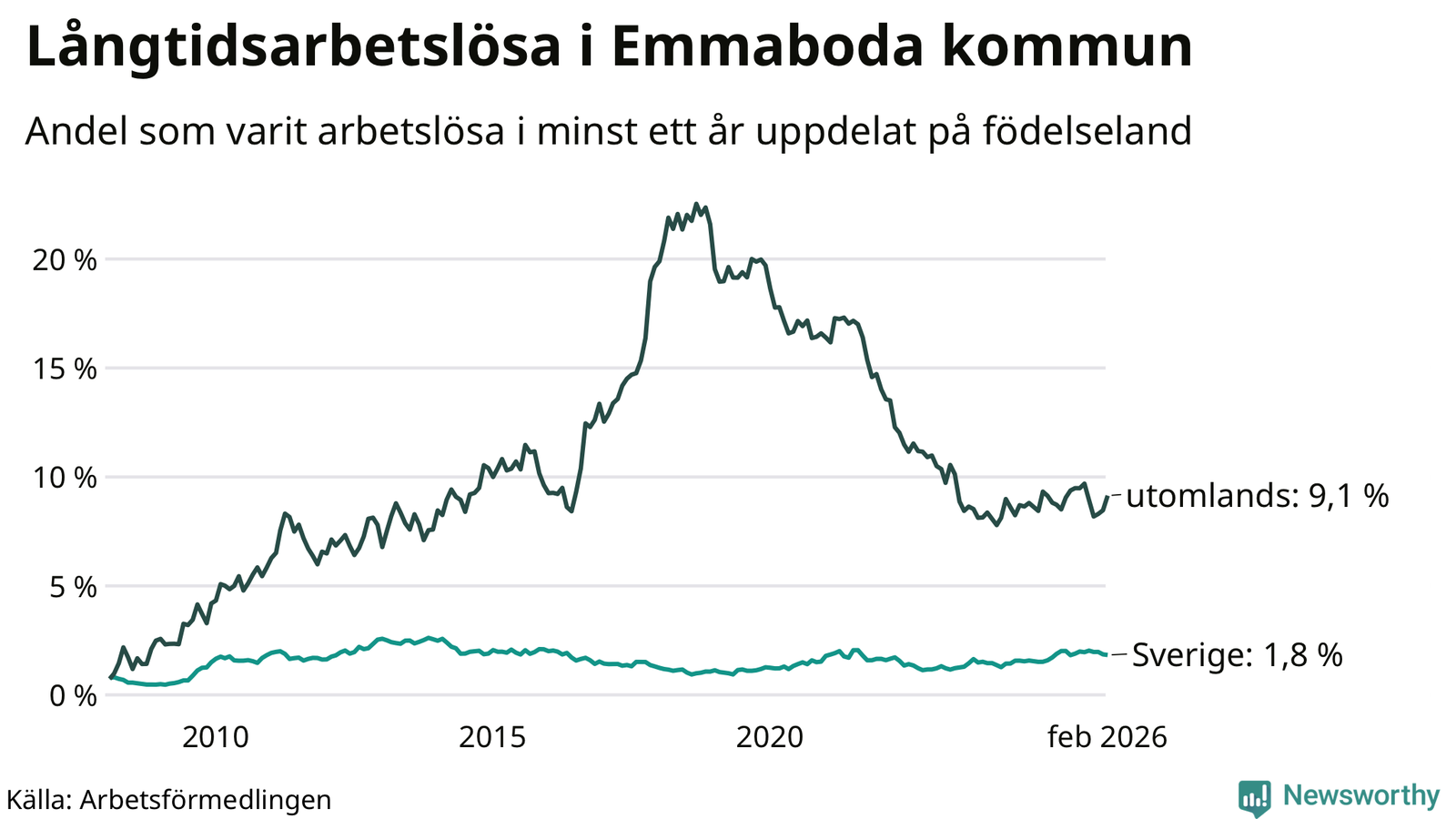 Långtidsarbetslöshet i Emmaboda i februari 2026